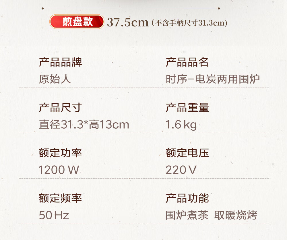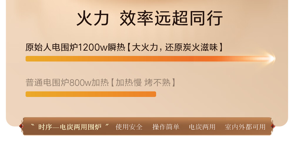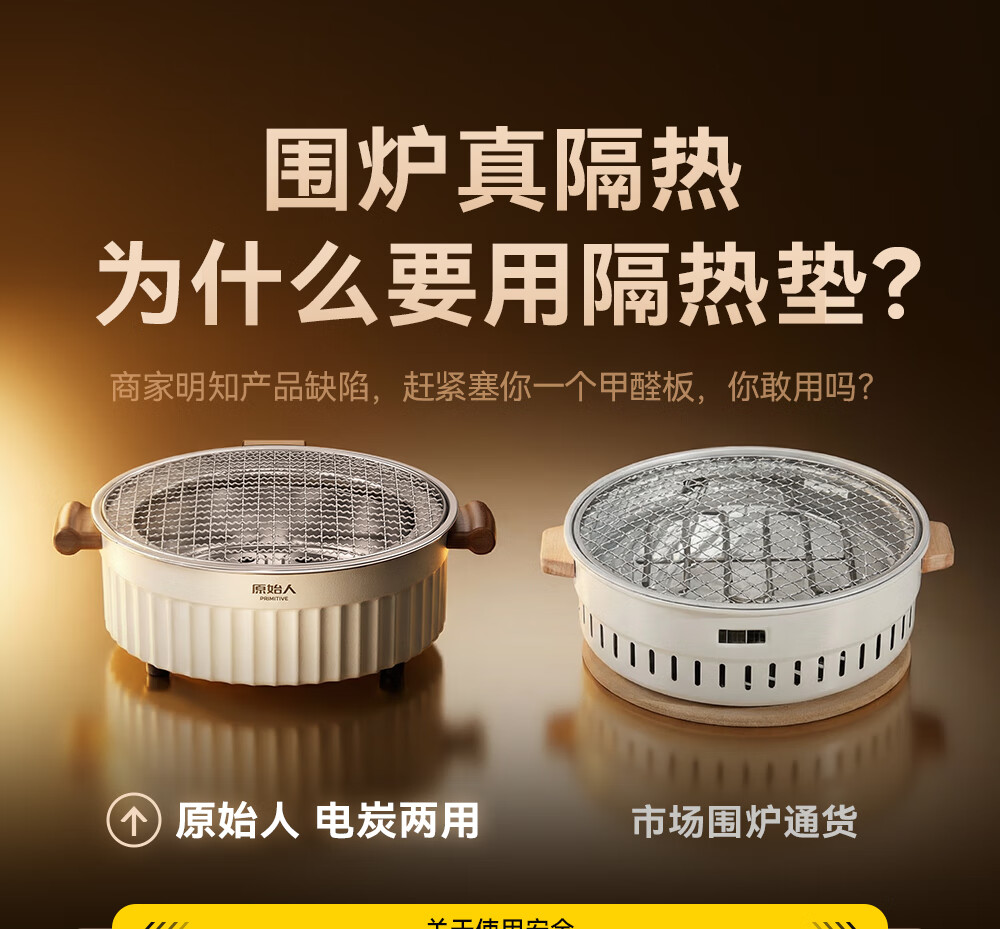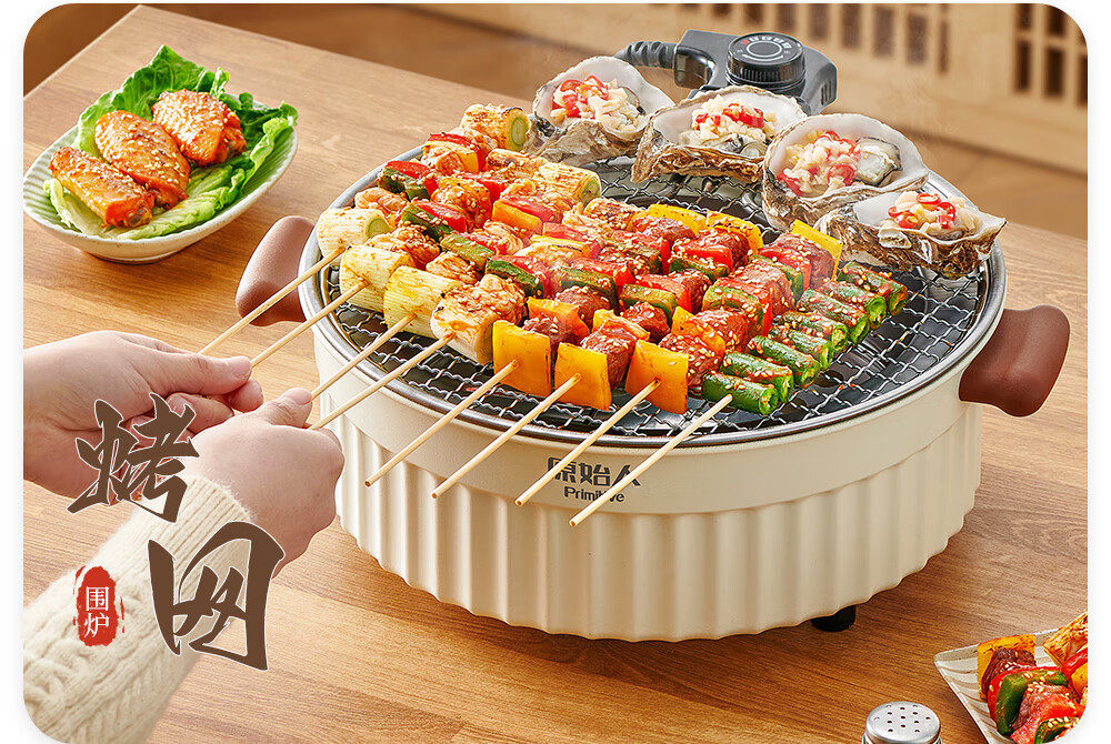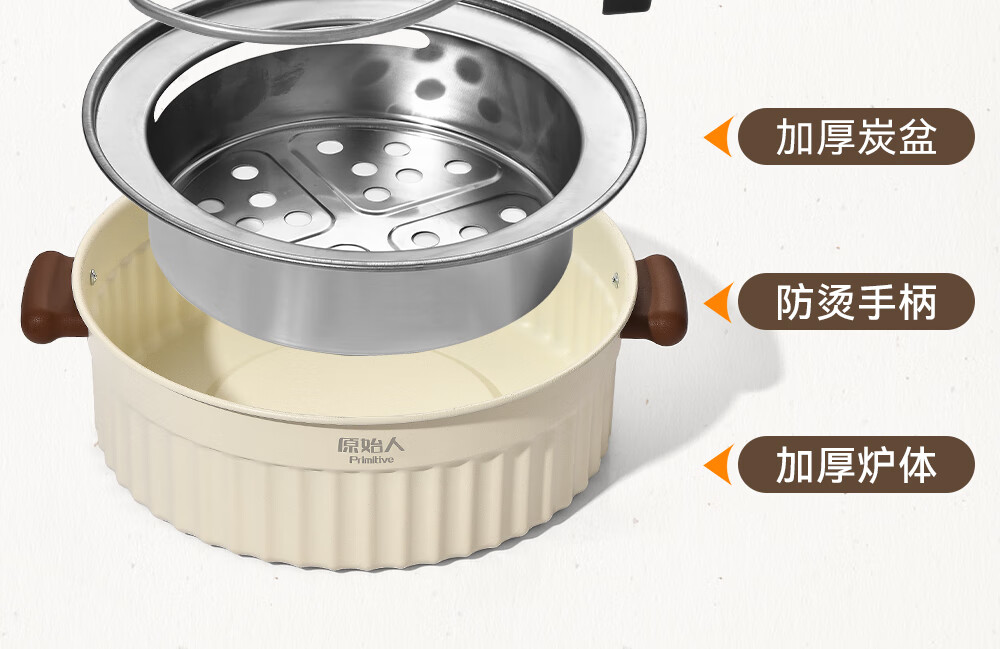 原始人(The Primitive)围炉煮茶电碳两用烤火炉套装电炉户外全套烧烤炉家用器具围聚烤肉 【烤网套餐+5斤碳】电碳两用