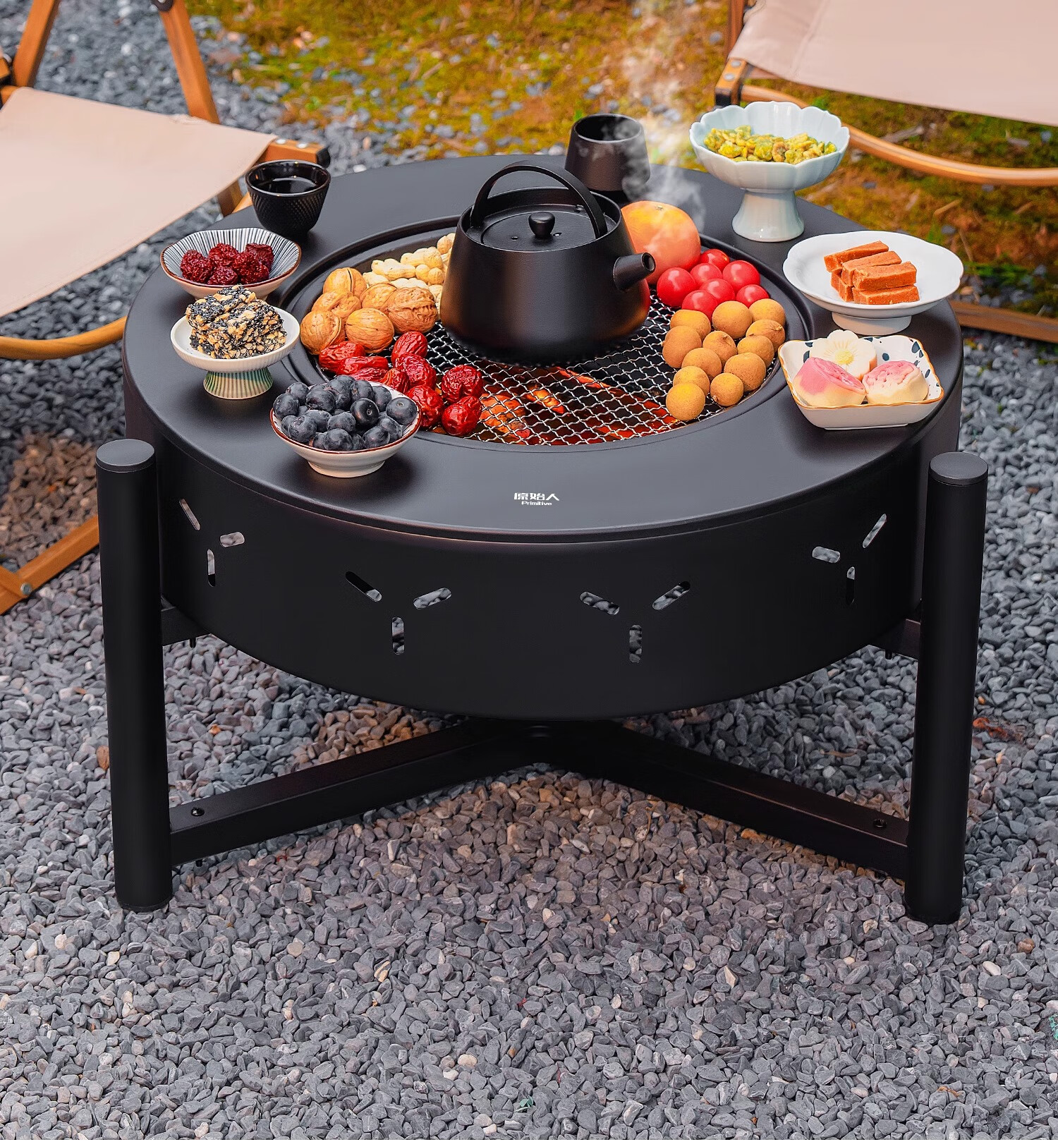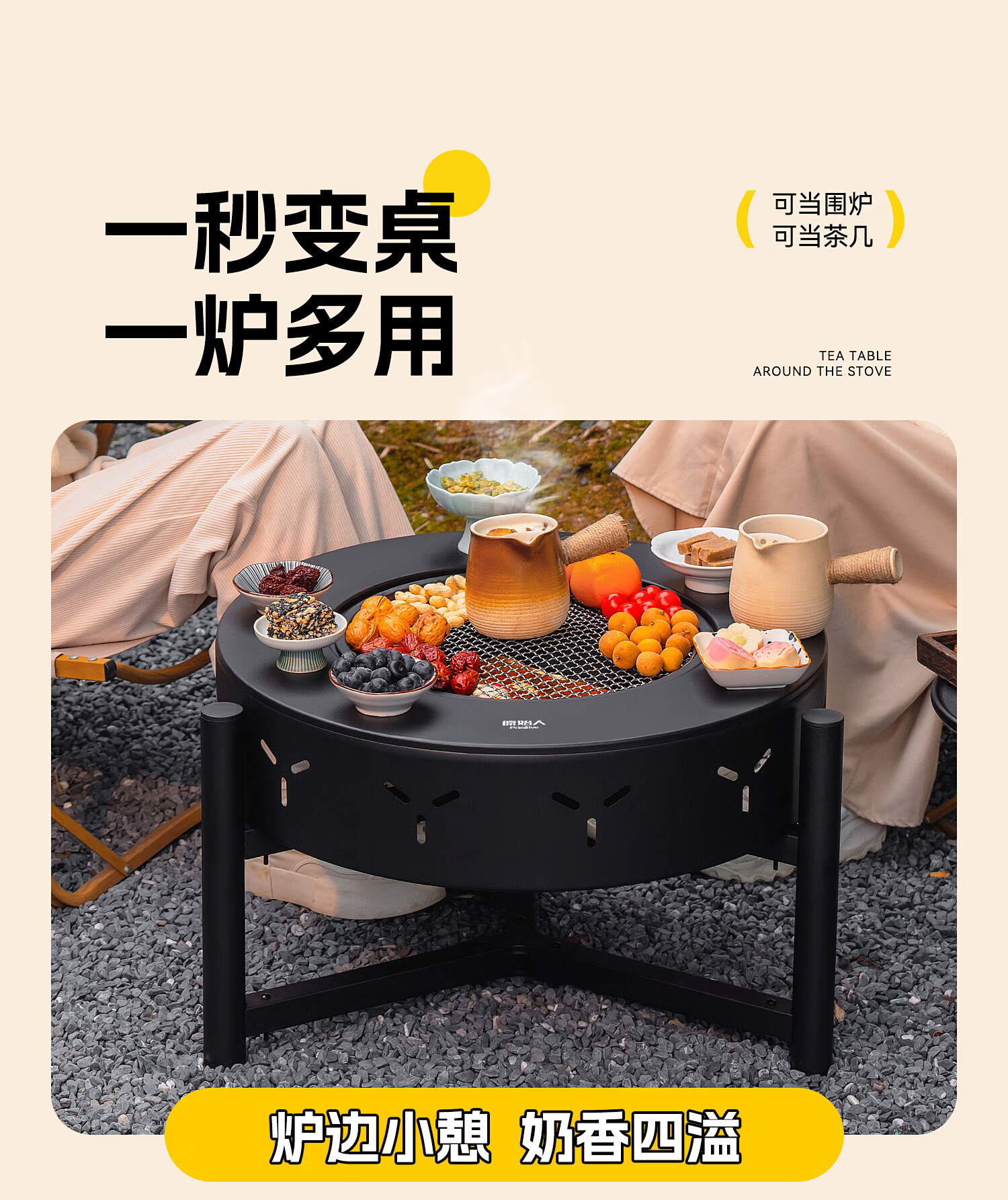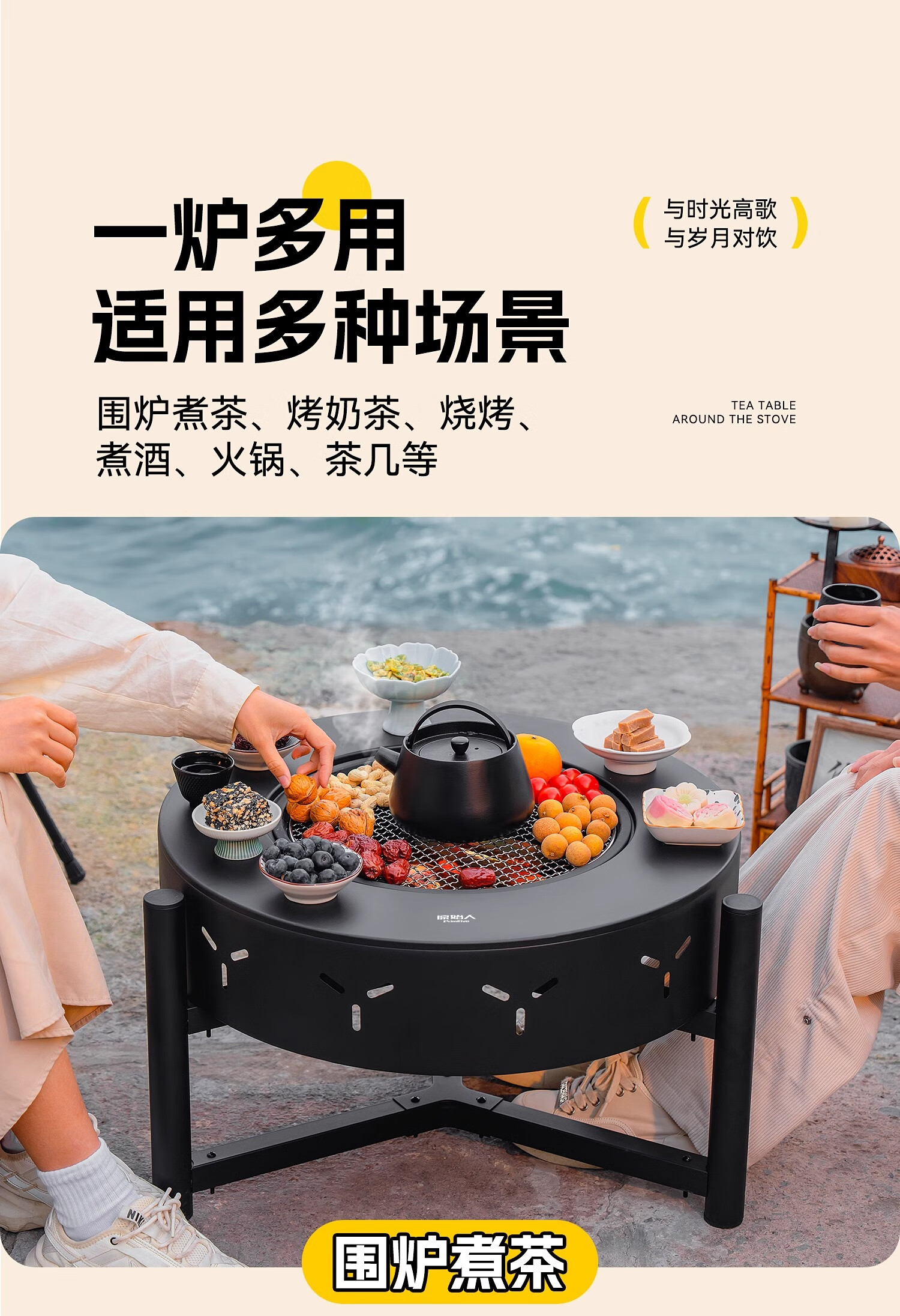 FIREPLUS庭院烧烤桌围炉煮茶炉户外烧烤炉方形取暖炭炉木柴多功能煮茶围炉 艾拉烧烤取暖桌(带桌盖)