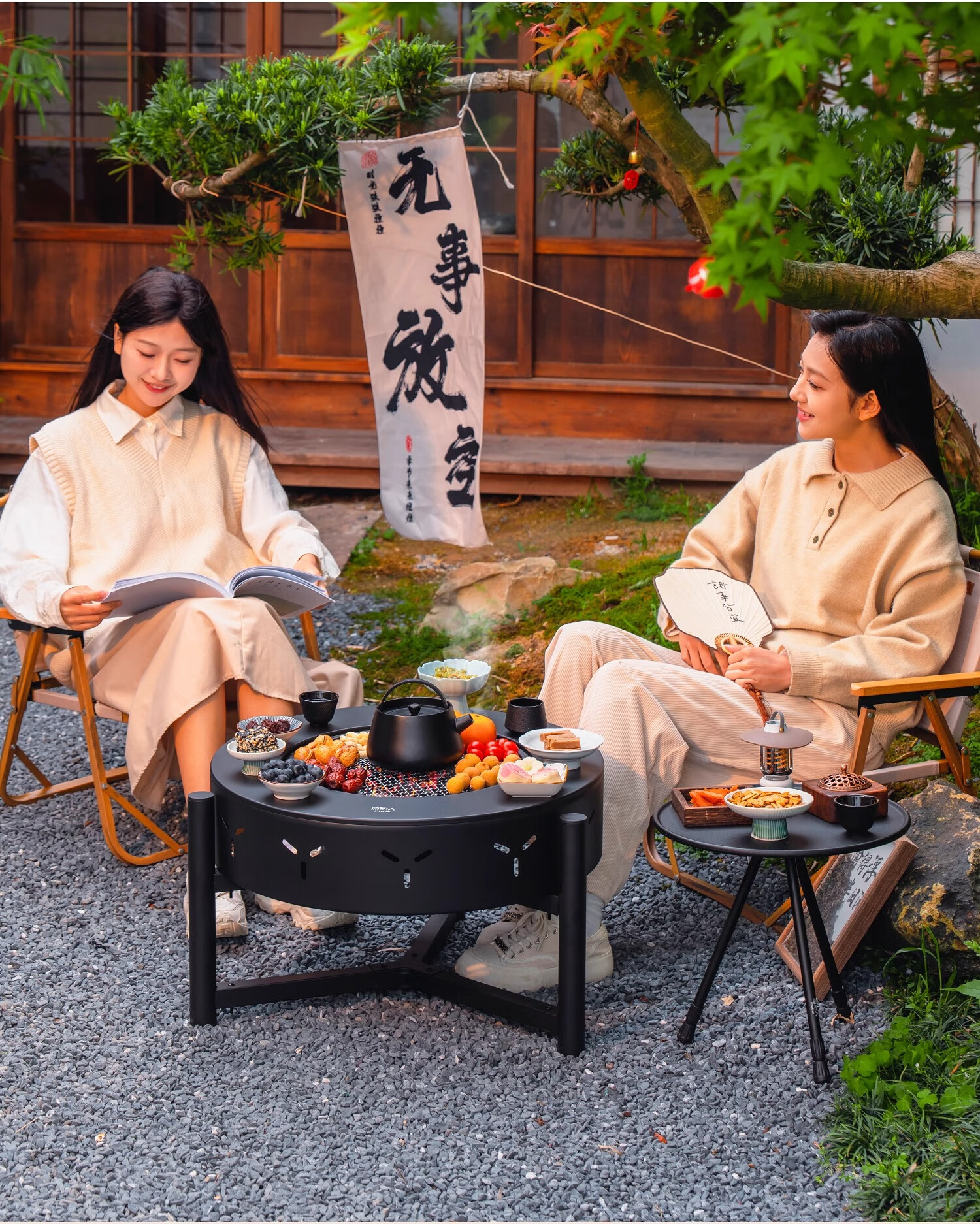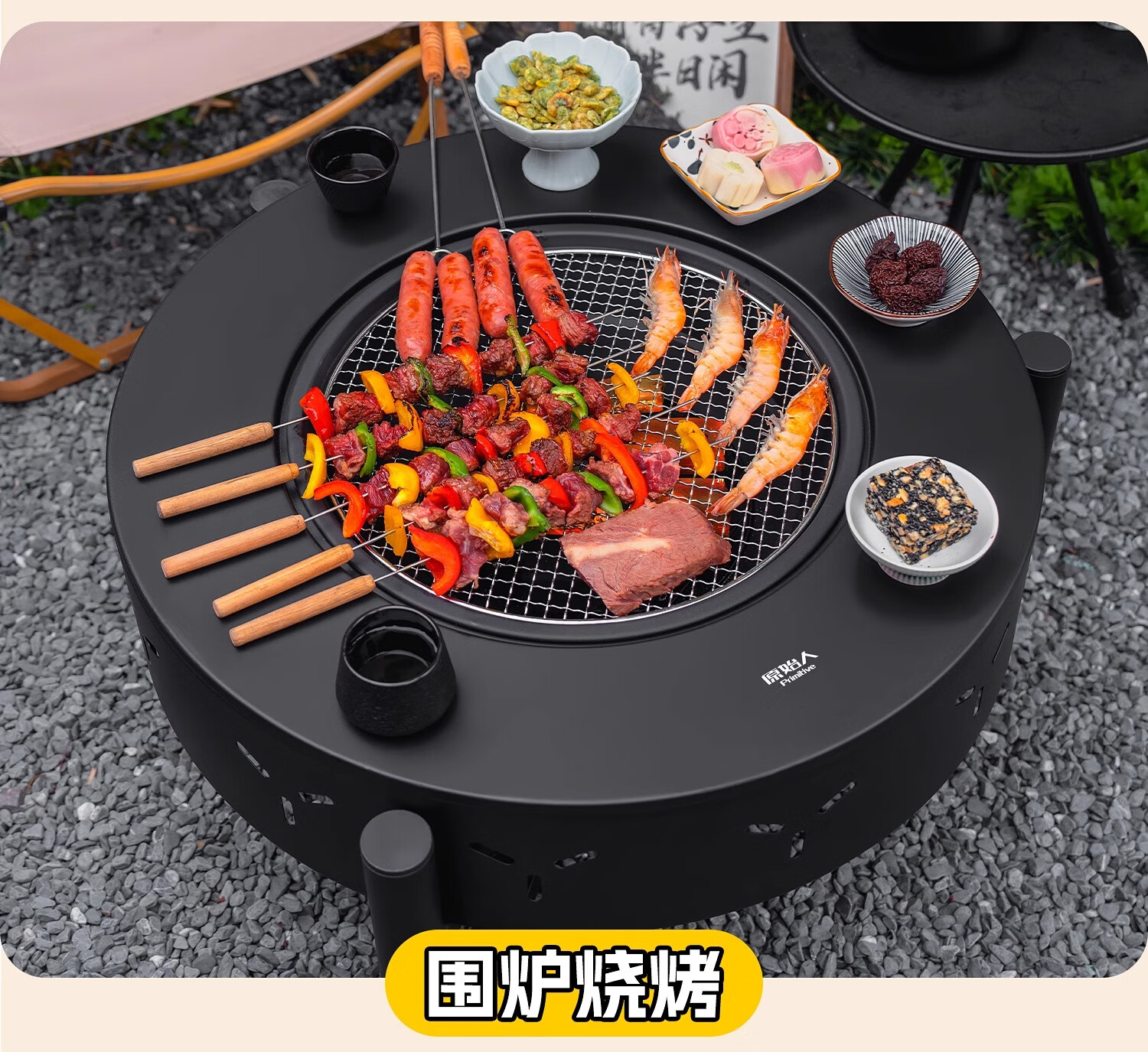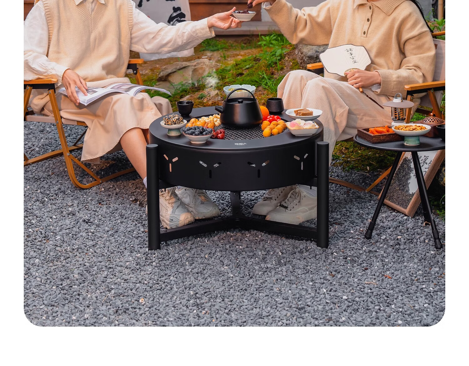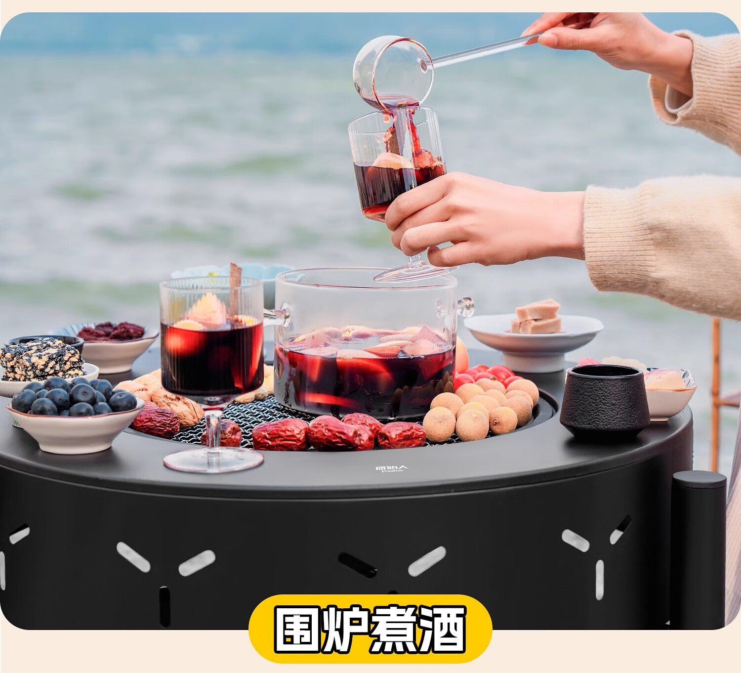 FIREPLUS庭院烧烤桌围炉煮茶炉户外烧烤炉方形取暖炭炉木柴多功能煮茶围炉 艾拉烧烤取暖桌(带桌盖)