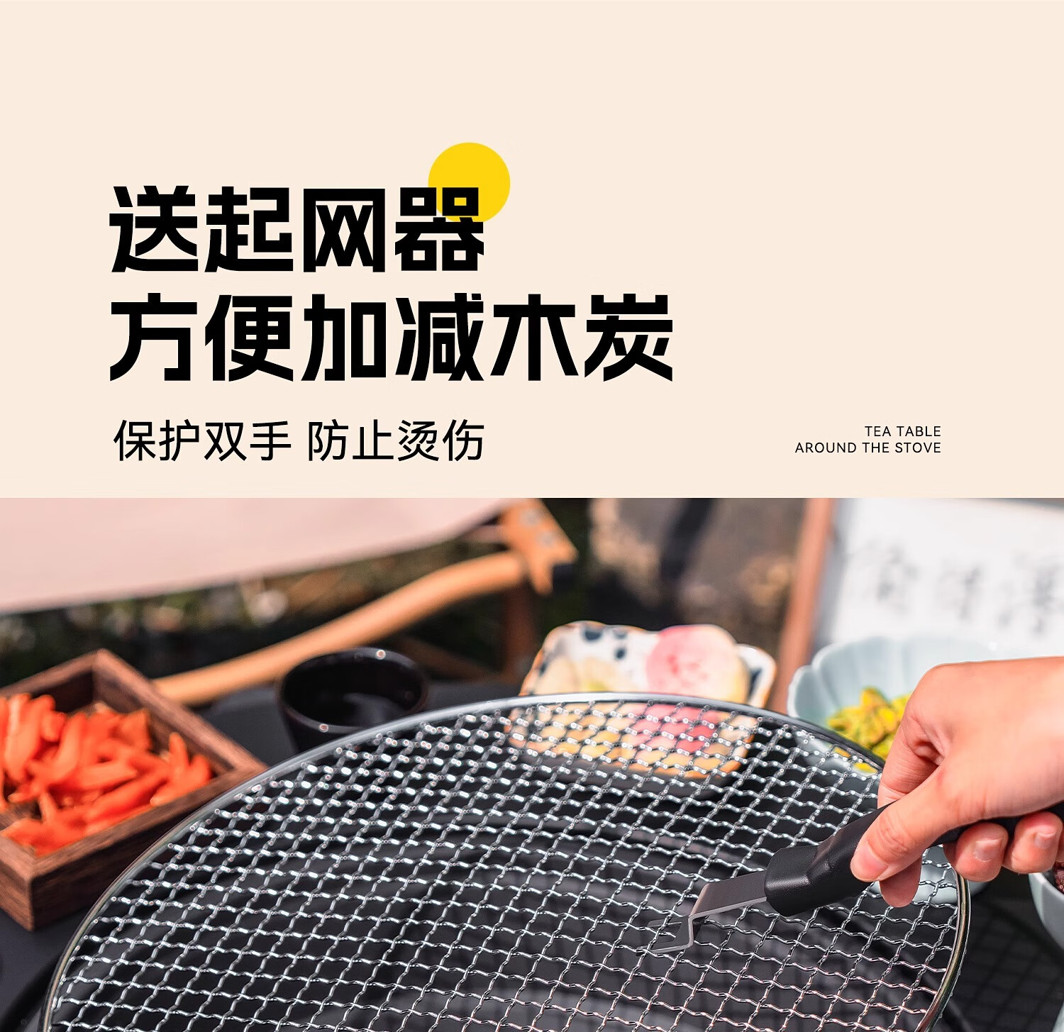 北极狼围炉煮茶家用庭院室内烤火盆煮茶烧水冬季户外露营烧烤取暖 59cm围炉5斤碳5件套