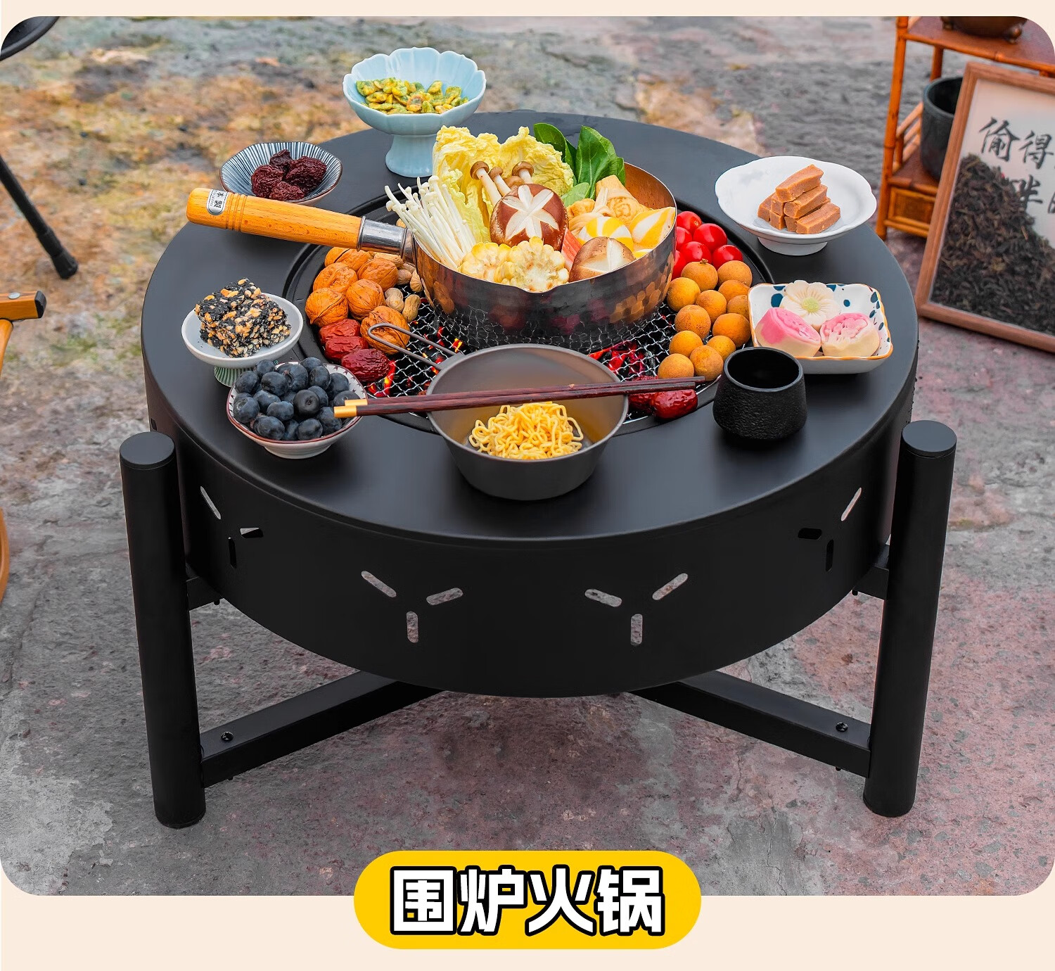原始人围炉煮茶烤火炉套装家用室内器具全套冬天庭院火炉烧烤桌盆 围炉【加厚碳钢】基础套餐