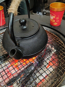 这个烤炉非常非常的好用,和传统的烤炉不一样,它的灰不会向外溅燃烧的煤炭的灰都在铁锅之中。使用完毕之后,把铁锅里面的灰倒掉,用水冲洗一下就可以了。烧烤面非常的大,可以同时烤很多的东西,油也会落到灰上,不会溅到外面,非常的方便。炉子外围的面积比较大,可以放很多很多的东西买的这个铁水壶也特别的老实虽然没有在炭上烧过但是在煤气上使用的时候感觉非常棒