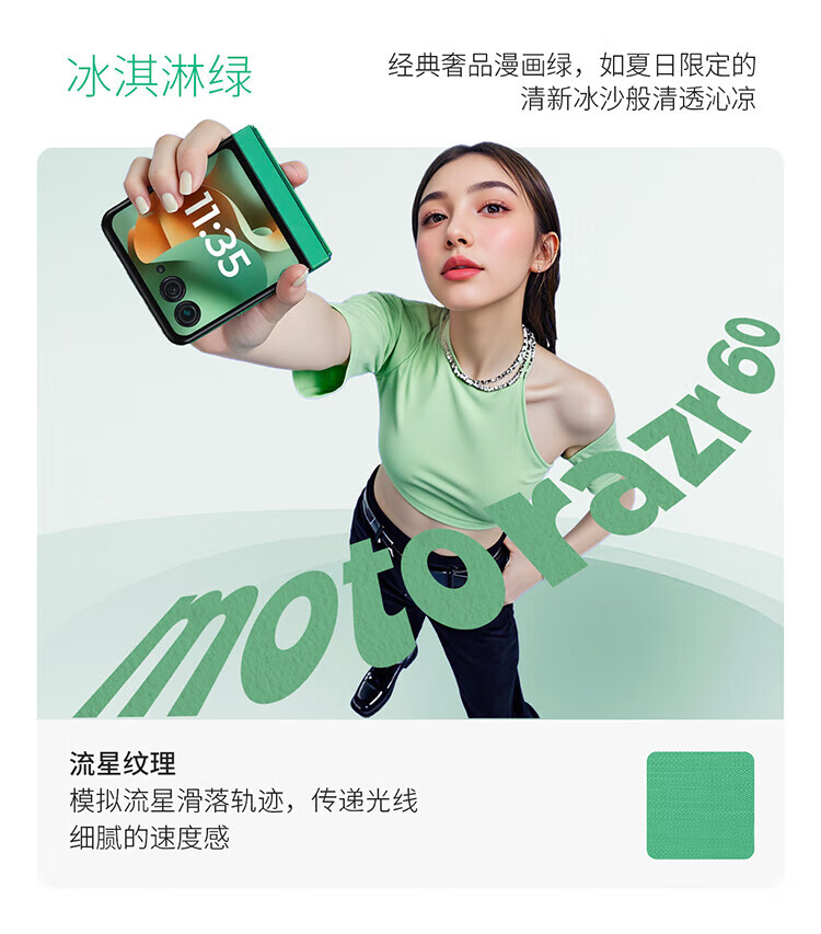 摩托罗拉moto razr 60 第六代折叠屏 60万次折叠认证 冰淇淋绿 12GB+256GB 官方标配