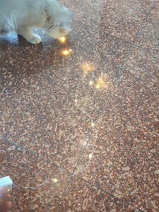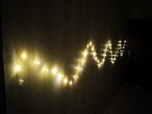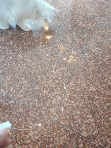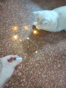 很别致的小灯饰,闪闪发光,还有几种不同的模式。我家小猫马上被吸引了,准备挂在生日蛋糕上的架子上面作装饰。呵呵。