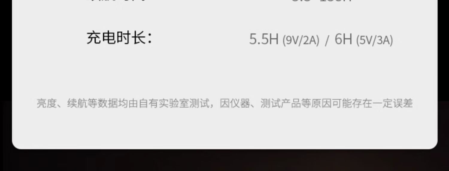 产品材质:非常好 光照强度:很亮 续航时间:续航时间很长 产品重量:很结实,很有分量 电源类型:锂电池