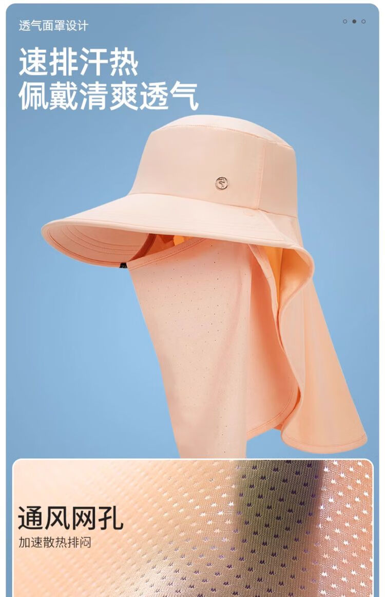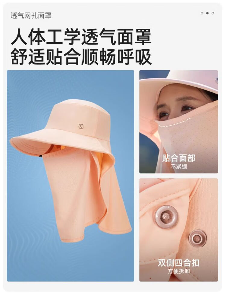 骆驼腮红防晒面罩女士全脸遮阳面纱透气防尘口罩冰丝护颈 【腮红冰丝】元气蜜桃,H0053A