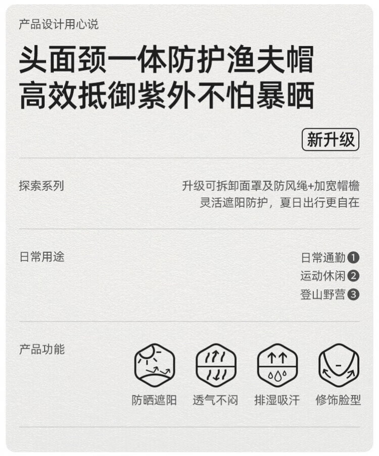 夏天到了,天气热起来了,怎么能少的了防晒帽,这个帽子帽檐大,而且对于面部有很好的保护防晒效果,在出门的时候能搞保证自己美美哒