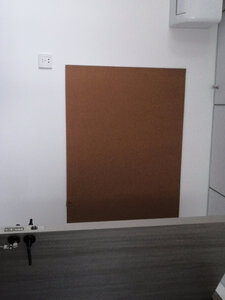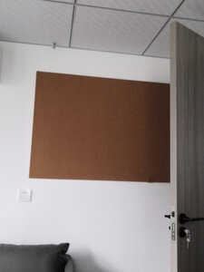 空间不是很大,买了整块的回来自己裁剪的,因为后面是白墙,时间长了孩子在上面乱画,不是很好看贴上软木板之后,孩子的一些资料就可以钉墙上了。还送了一些钉子,很贴心