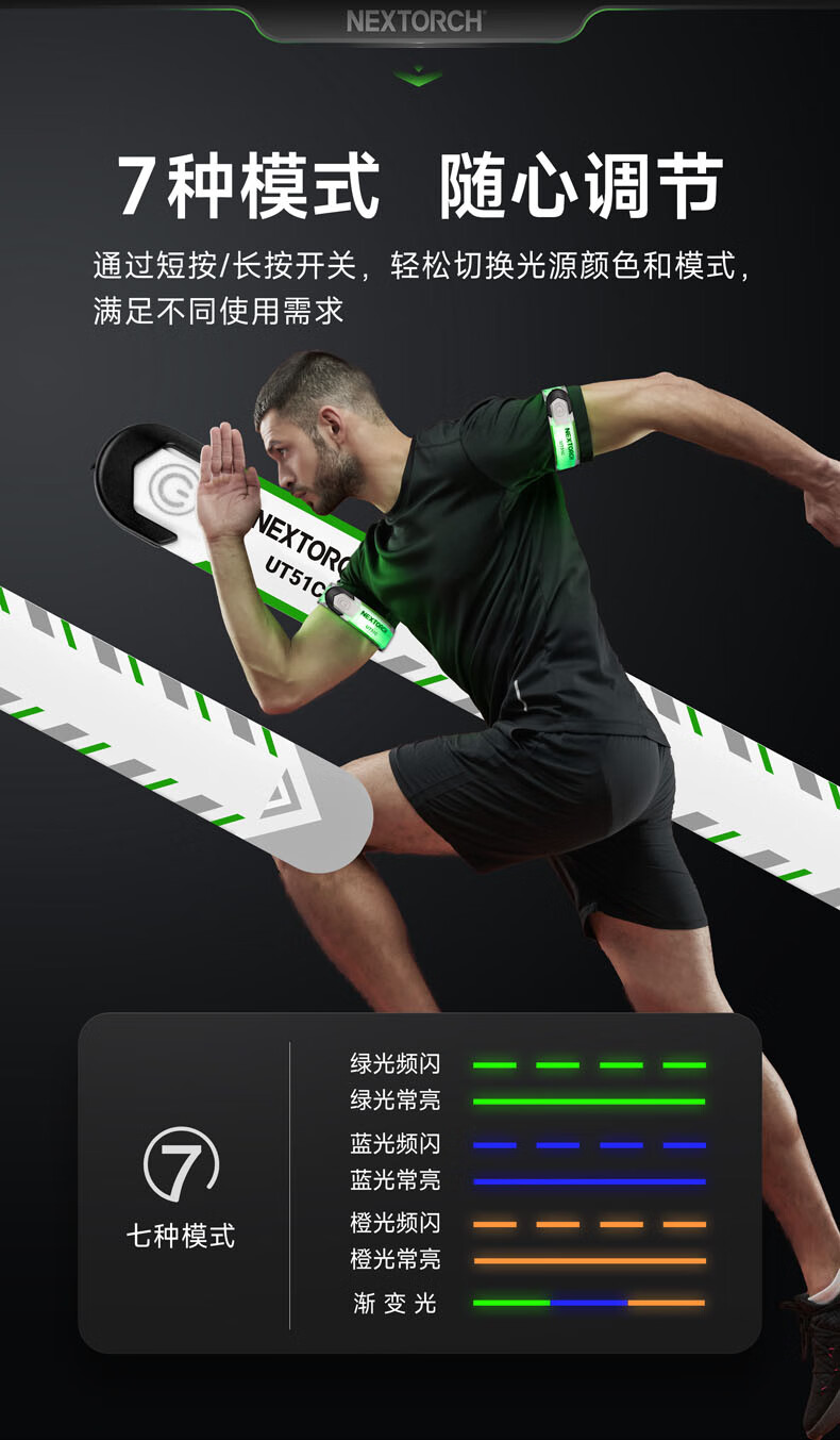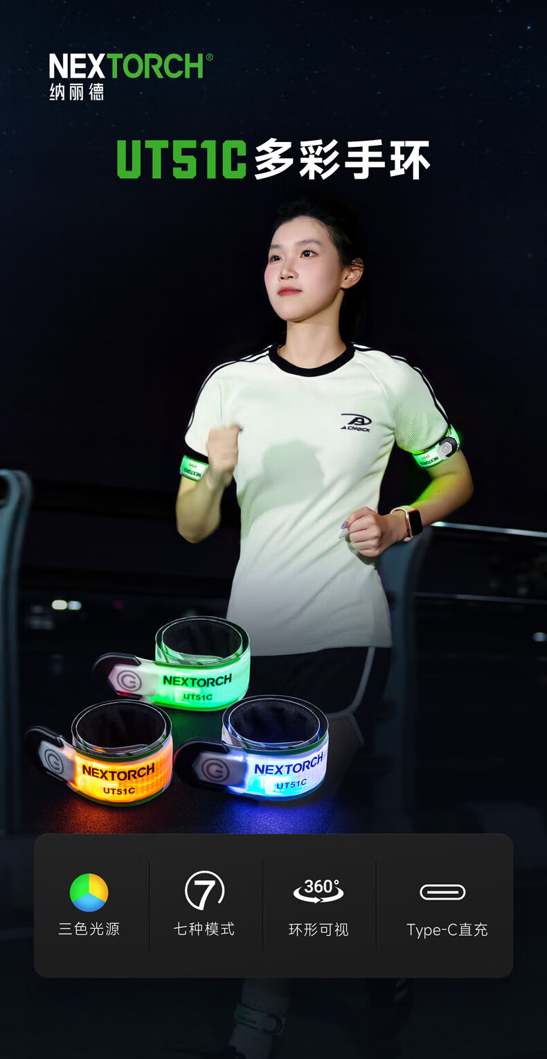 这个非常适合夜跑的臂带,三种光源来回变幻,安全性增加也很好看。纳丽德的品质非常棒!