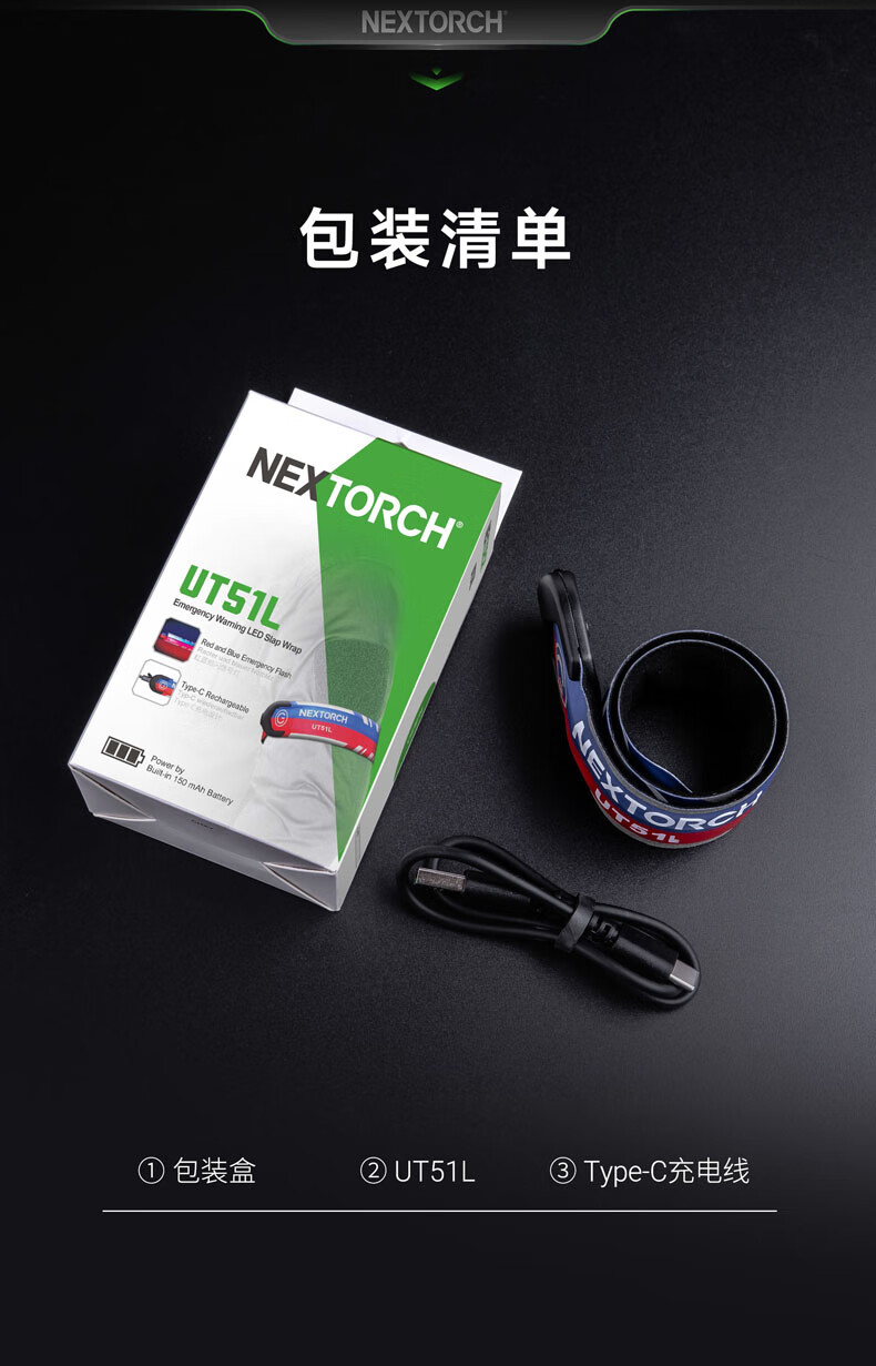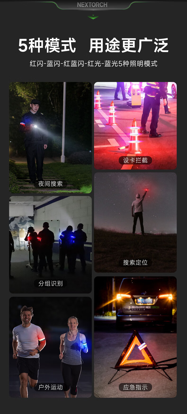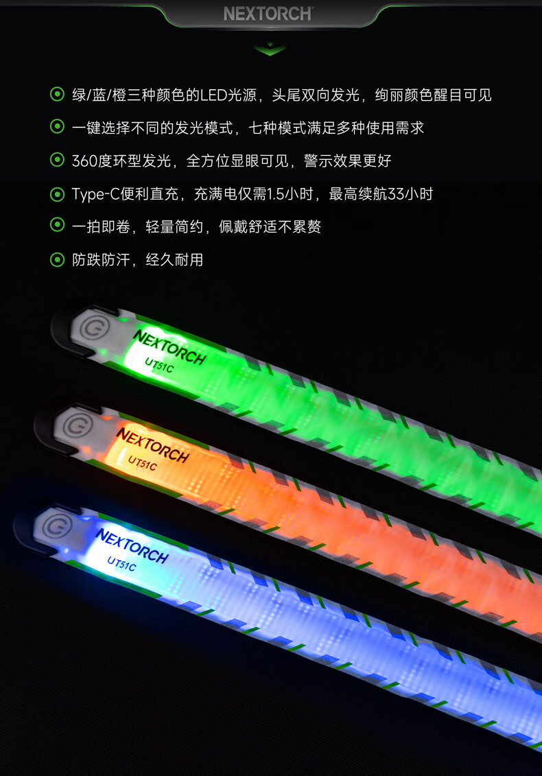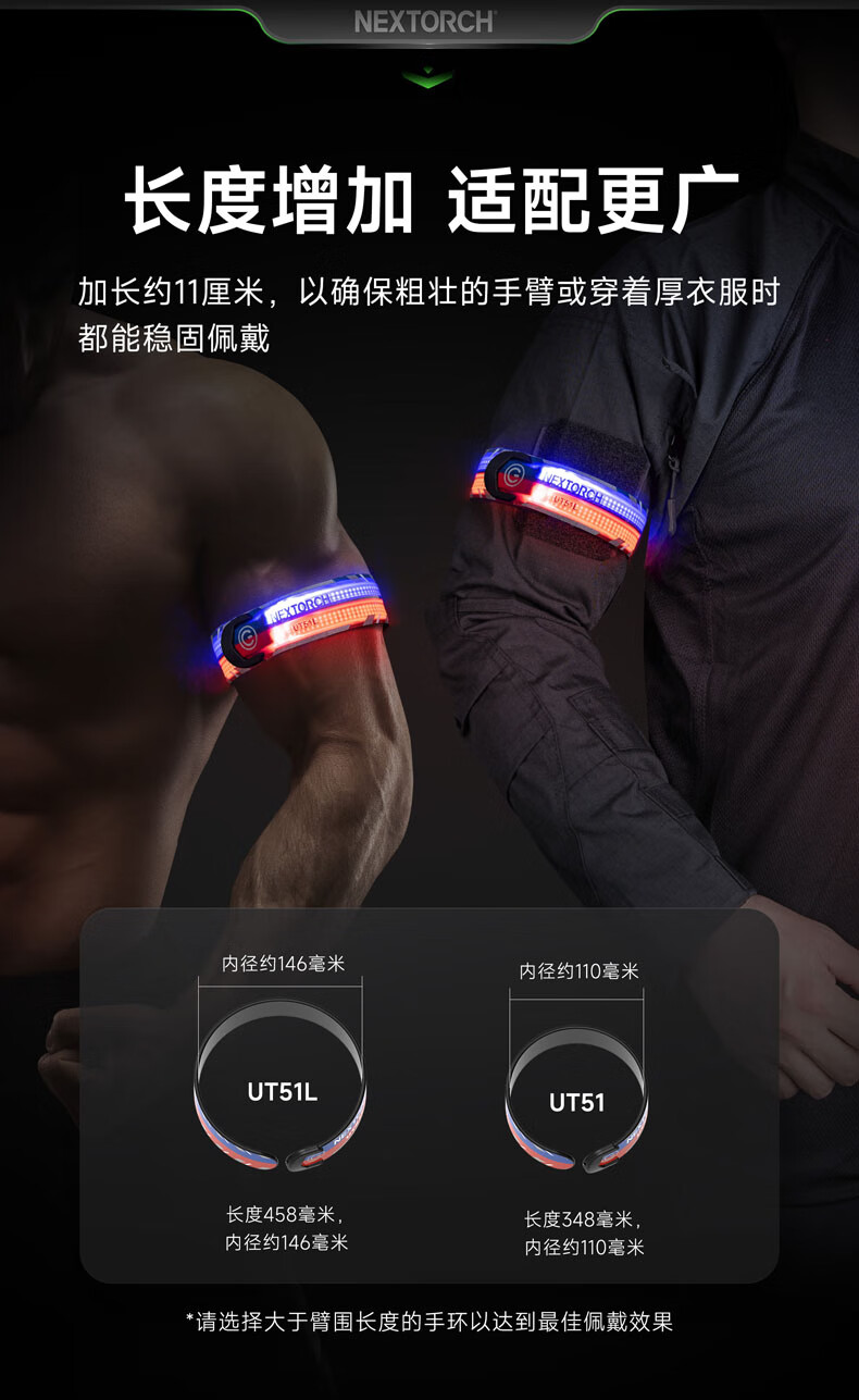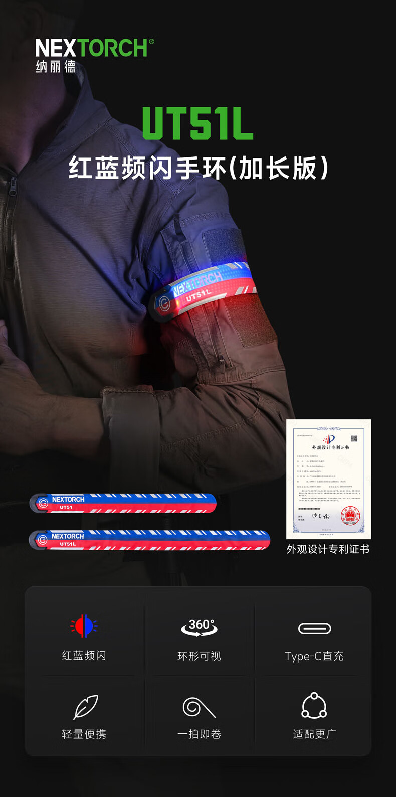 纳丽德(NEXTORCH)UT51L红蓝闪手环夜跑发光手环Type-C直充360度环型安全巡视信号灯 UT51