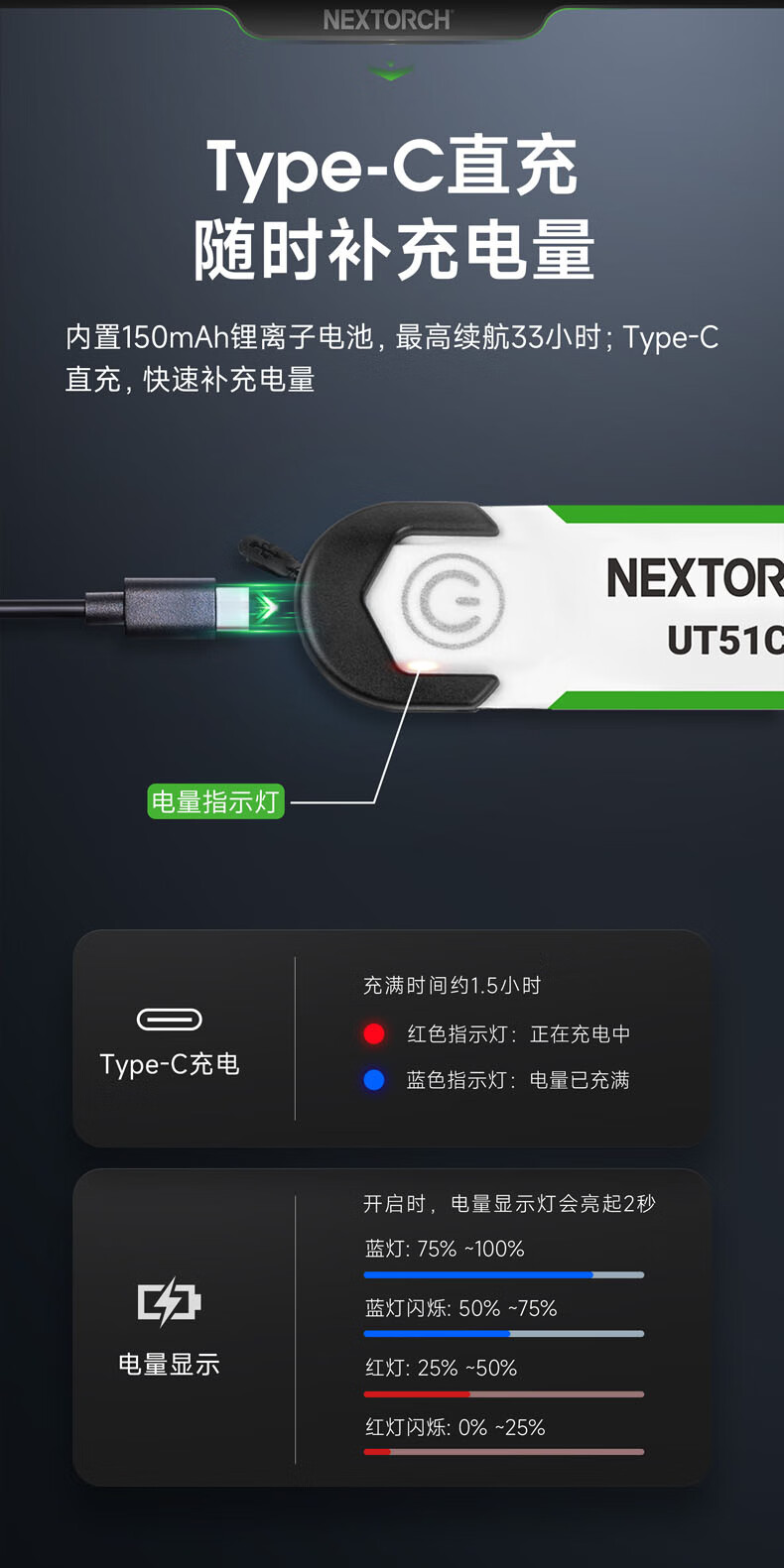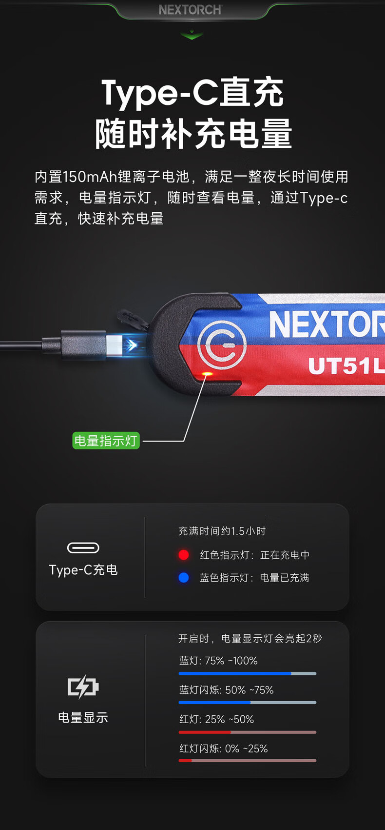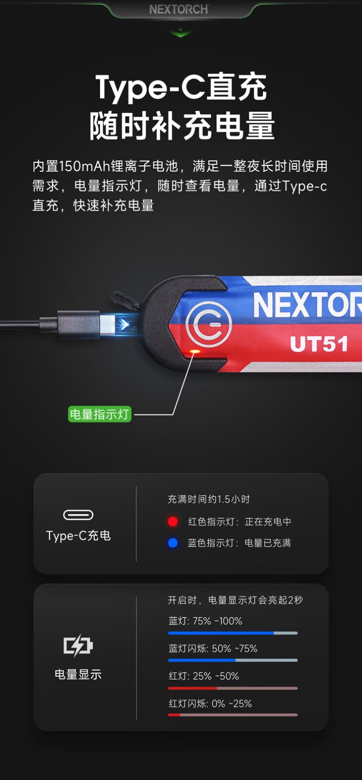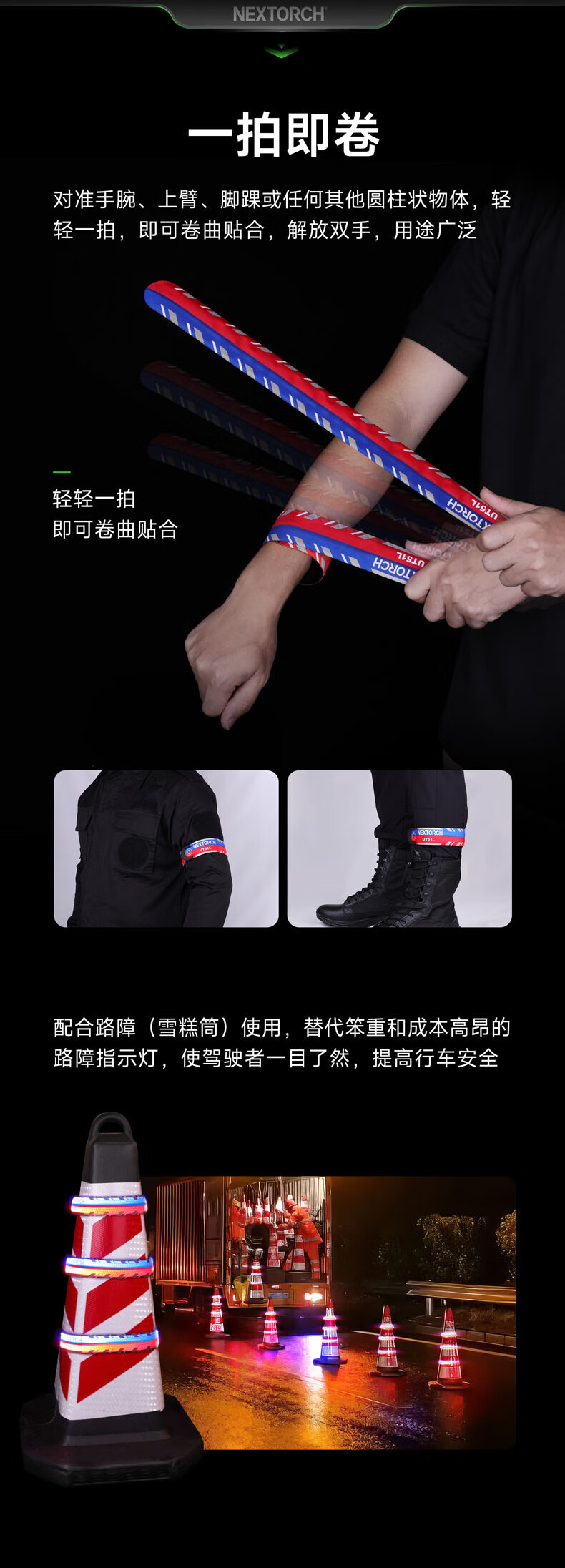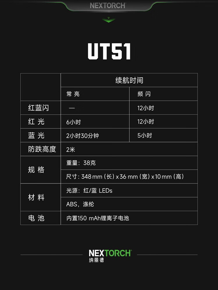纳丽德(NEXTORCH)UT51L红蓝闪手环夜跑发光手环Type-C直充360度环型安全巡视信号灯 UT51