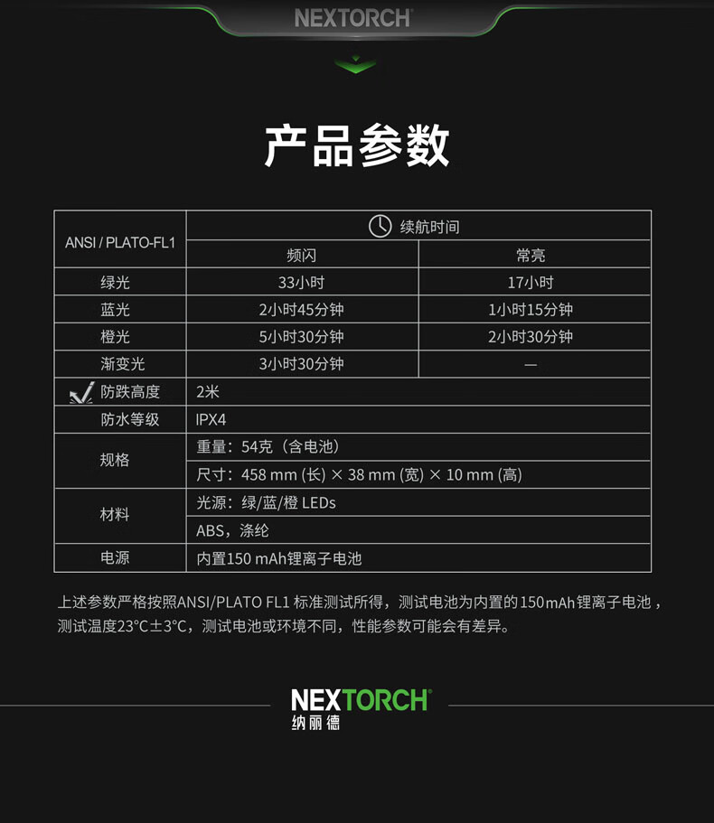 产品材质:感觉像小时候的卷尺,很轻巧 光照强度:夜间使用可见度很高 续航时间:连续使用个把小时一点问题都没有 产品重量:很轻,没有什么佩戴不便的感觉 电源类型:C口充电很方便