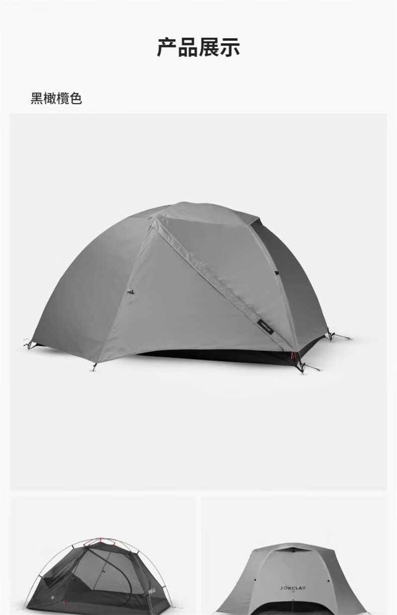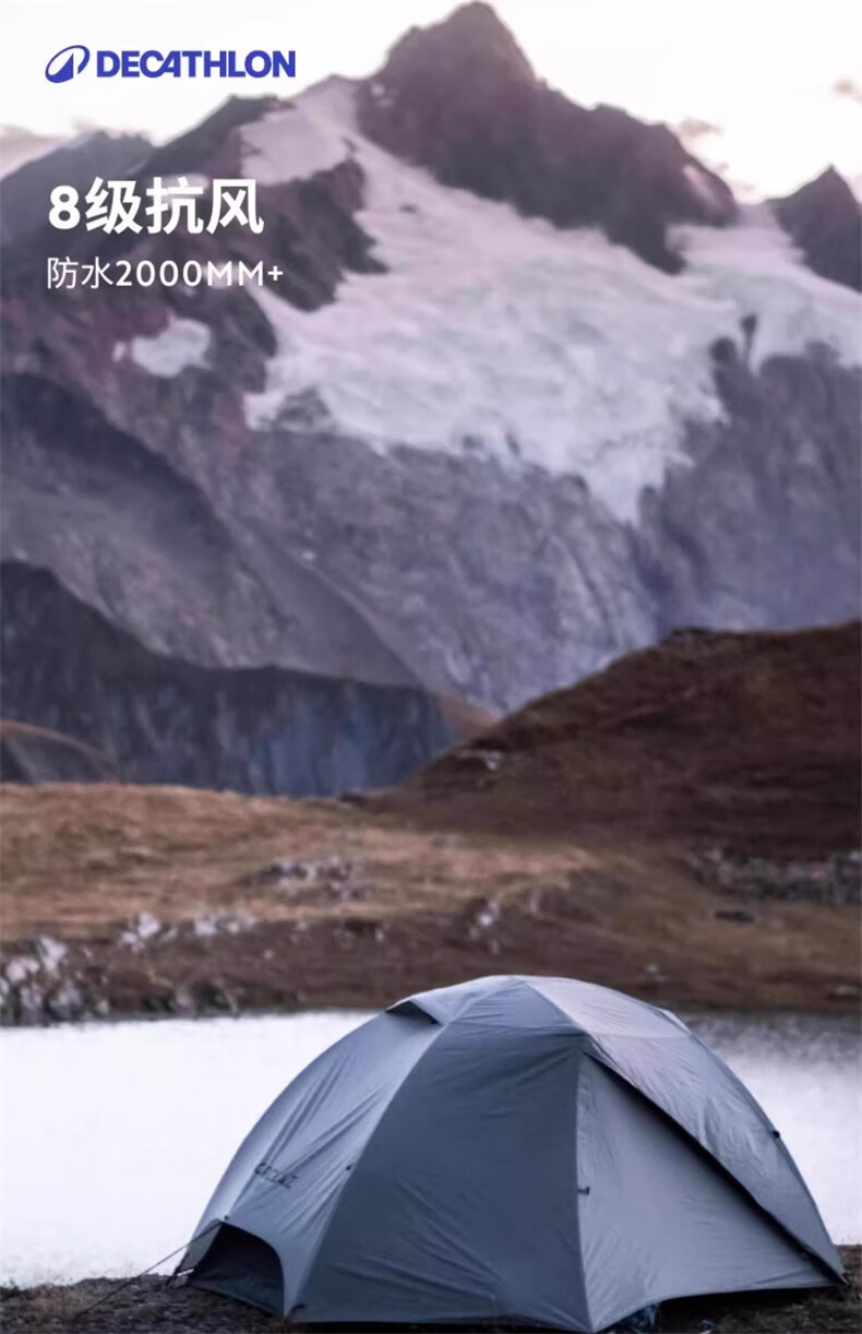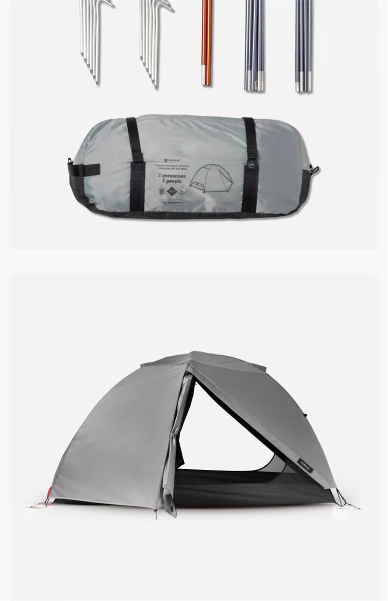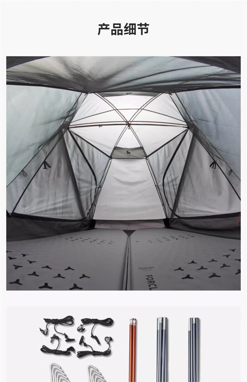 迪卡侬双人登山野营帐篷户外专业露营装备情侣便携防晒轻铝杆FOR3 MT500专业级三人帐