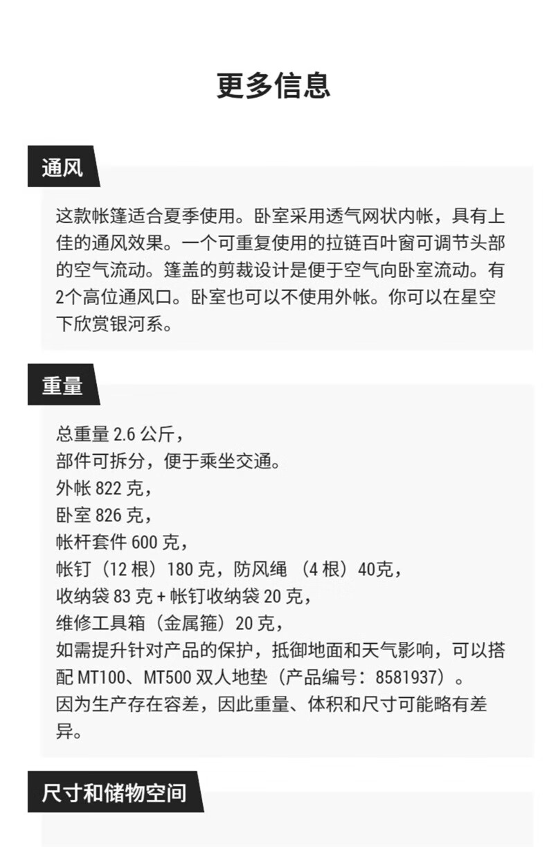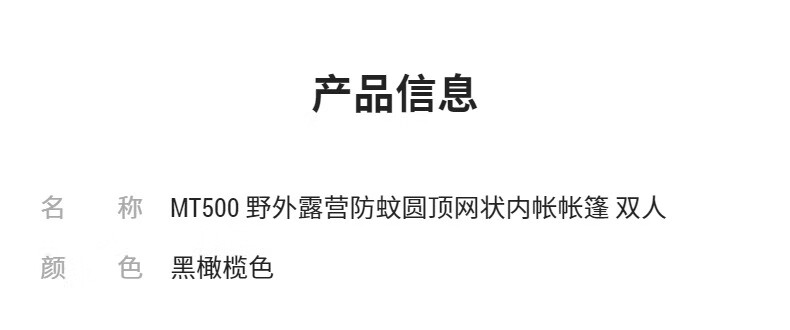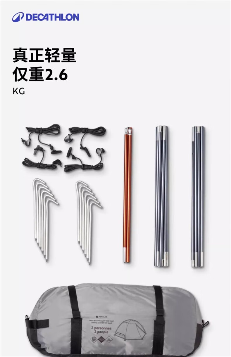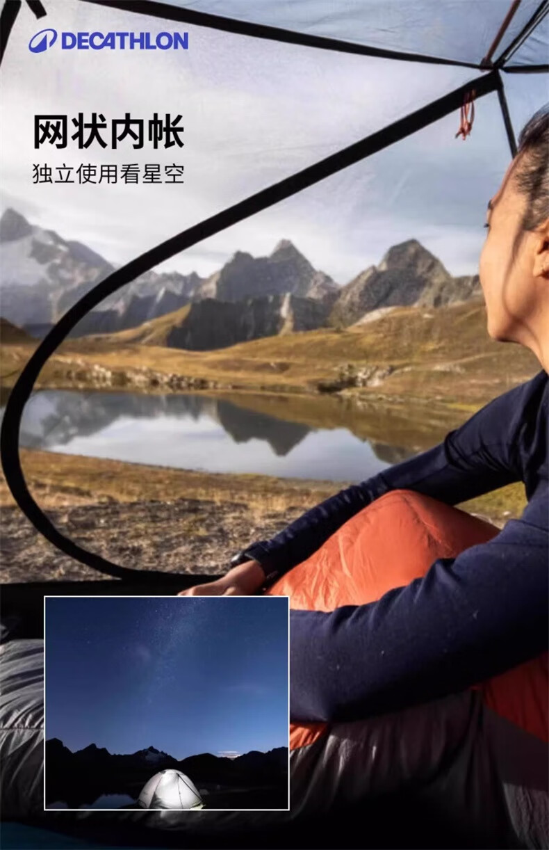 迪卡侬野外露营防蚊圆顶网状内帐双人帐篷 MT500野外露营帐篷-双人