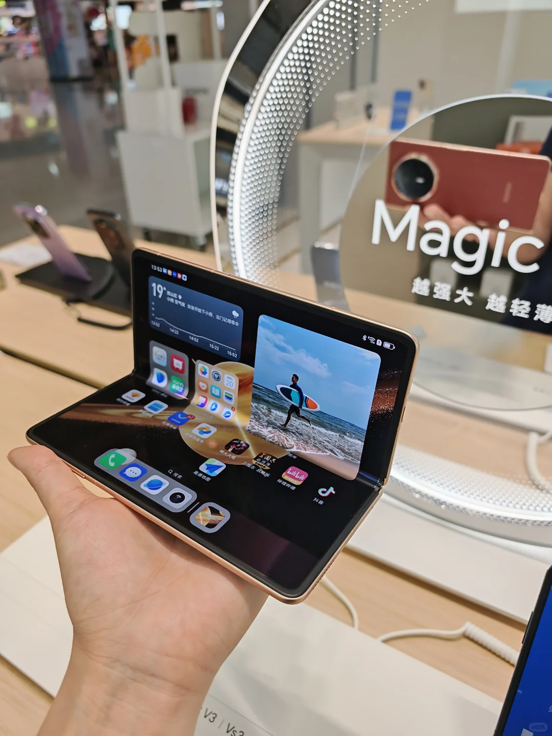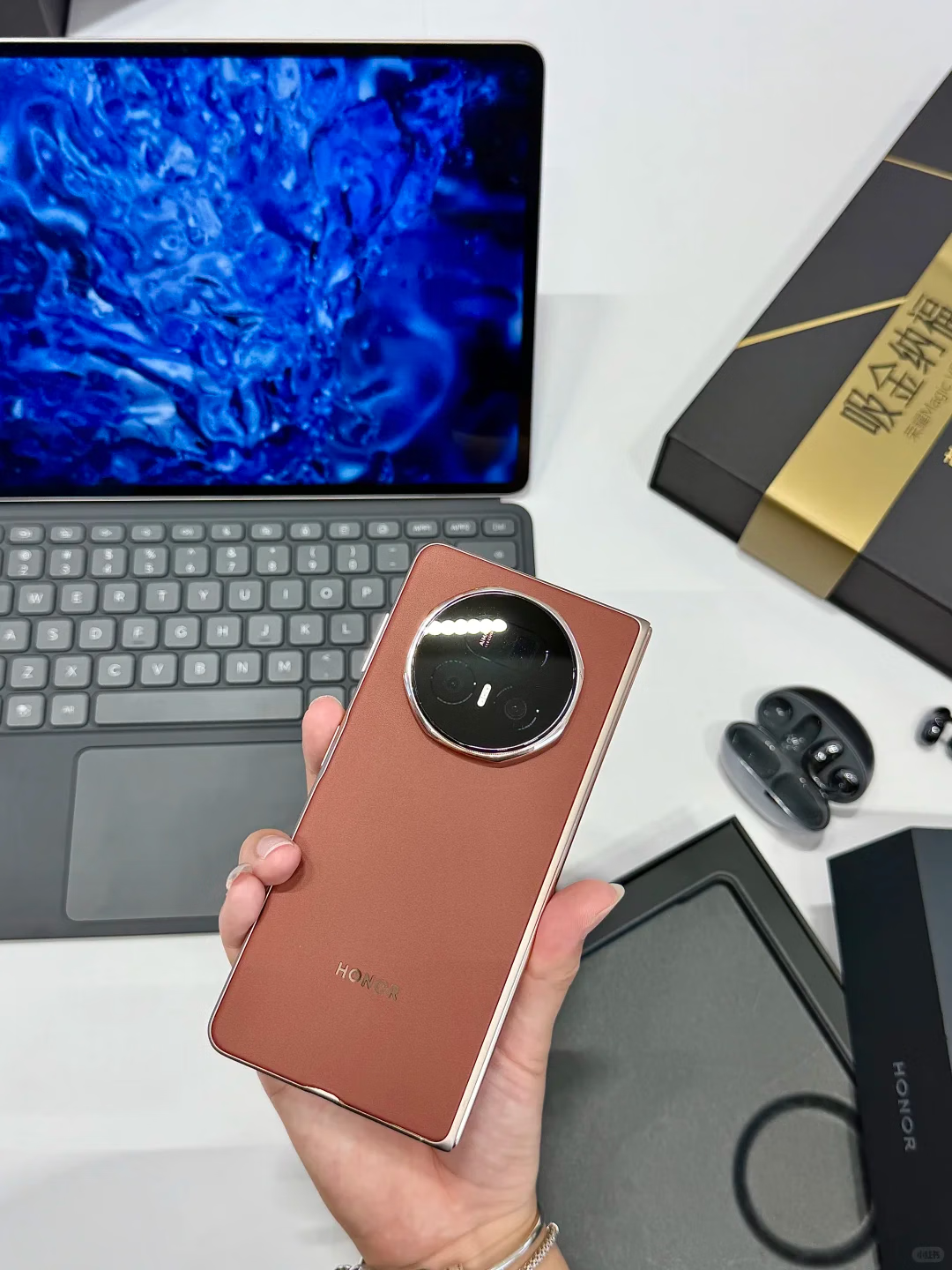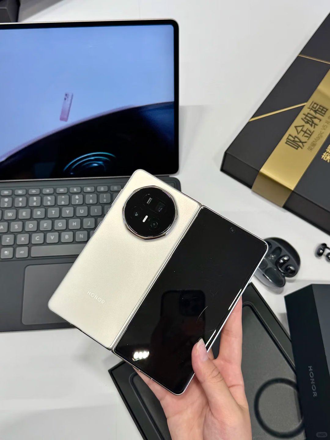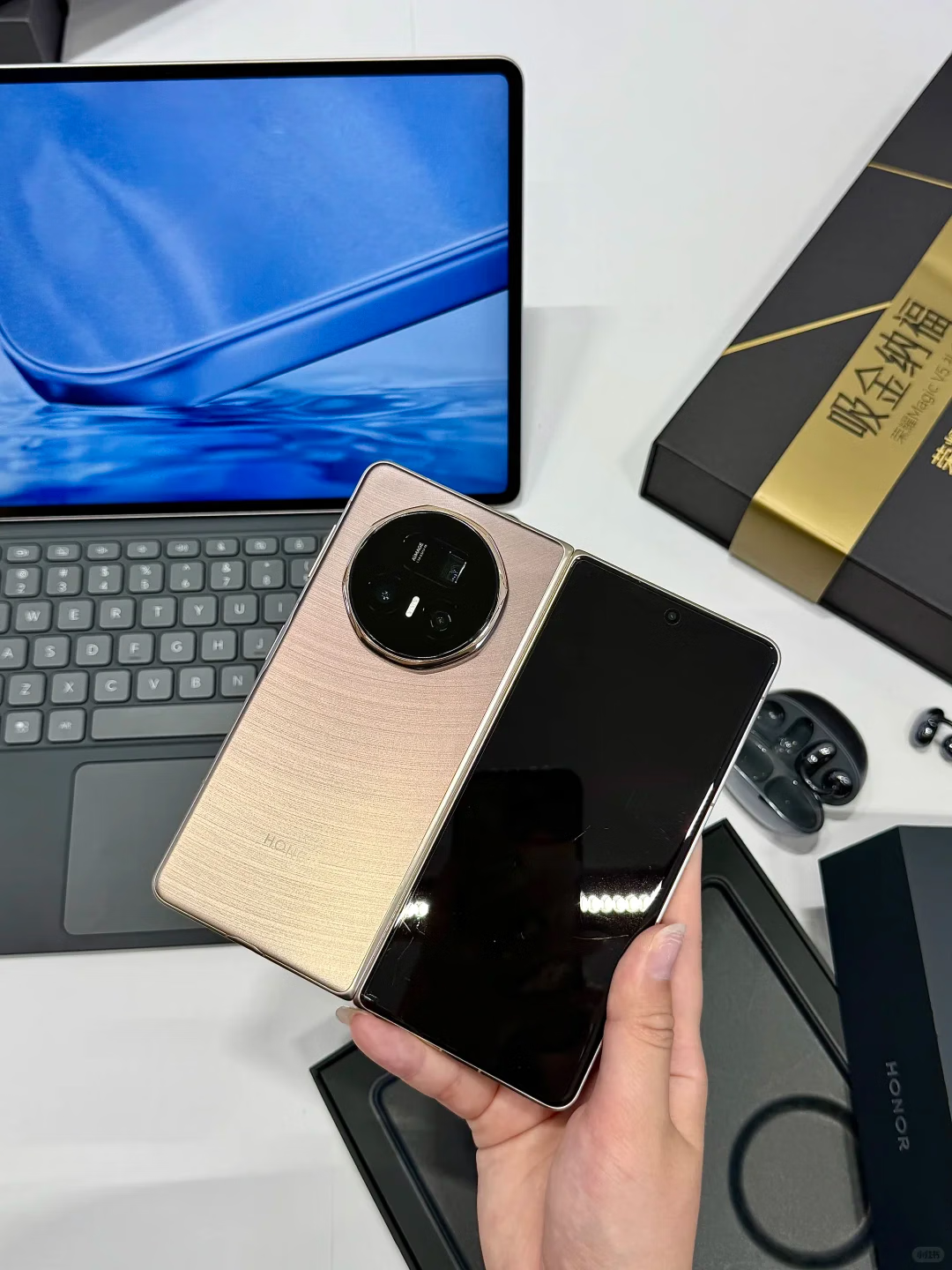 期待了好久的荣耀V5丝路敦煌终于买到了,好高兴,手机非常的轻薄,和直板机一样,根本感觉不到是折叠机,ai功能也非常的强大,使用起来很方便
