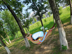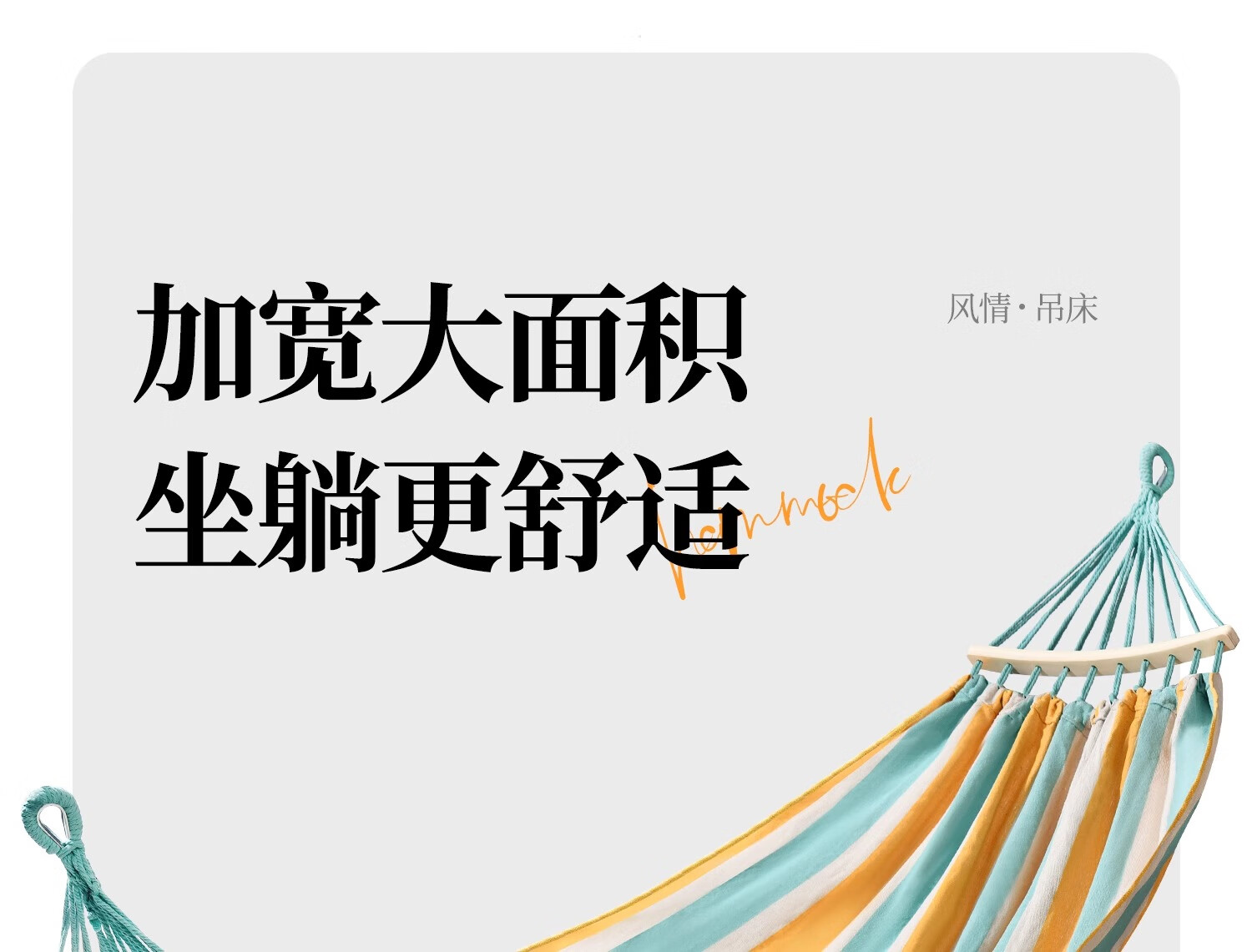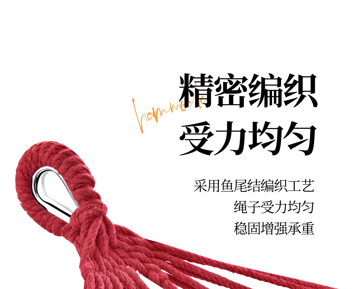 便携性好,这款吊床轻巧便携,收纳起来不占空间,出门旅行、露营时可以轻松携带。材质非常结实,承重力强,躺上去完全没有负担感。