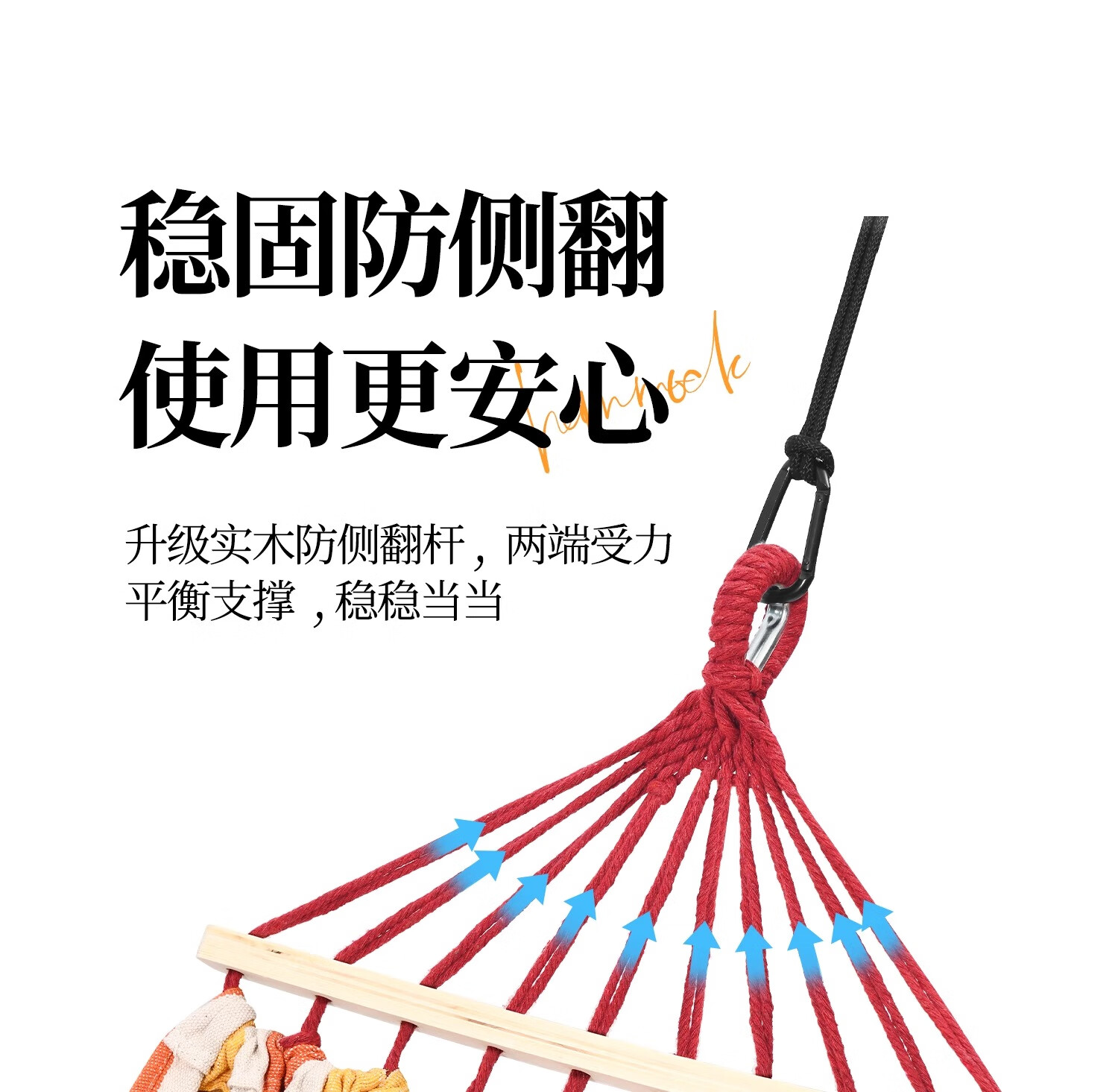 盛源 吊床户外双人 单人吊床防侧翻 帆布吊床学生宿舍室内秋千 弯木防侧翻款红色(0.8米宽)