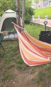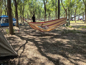 面料透气不闷热,边缘的缝合细节也很精细,完全没有粗糙感。 在户外找到两棵合适的树,就能快速搭建起属于自己的舒适角落。强烈推荐给所有热爱自然和懒散时光的朋友