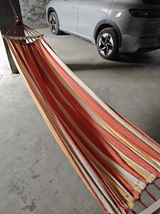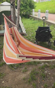 这款吊床真的让我惊喜!只能用四个字形容,“物美价廉”两个大人坐上去轻轻松松,尺寸合适,孩子也很喜欢玩,躺着很舒服。