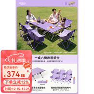 原始人户外蛋卷桌便携式折叠桌野餐桌椅露营装备用品野炊野营套装 120薄雾紫+紫色月亮椅*6