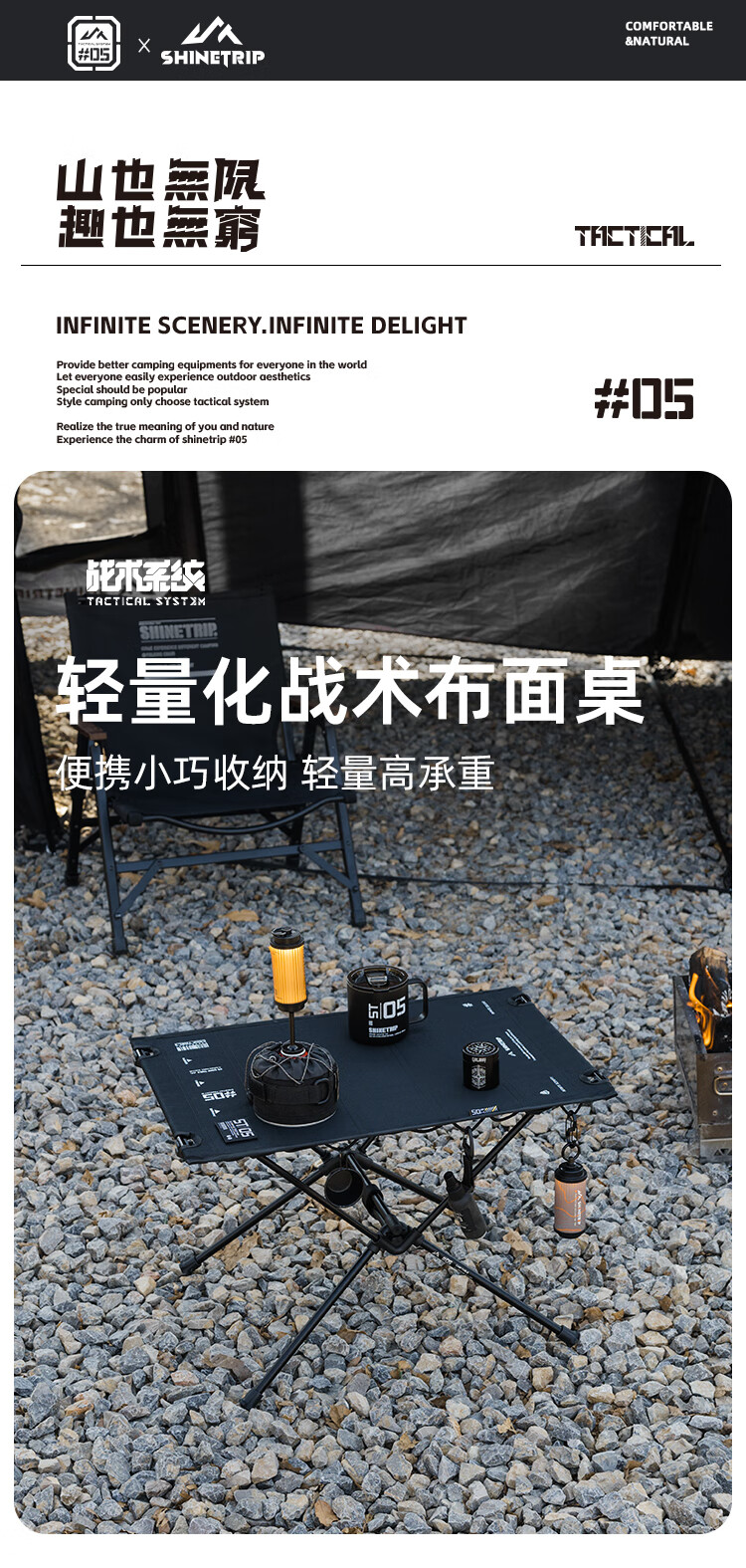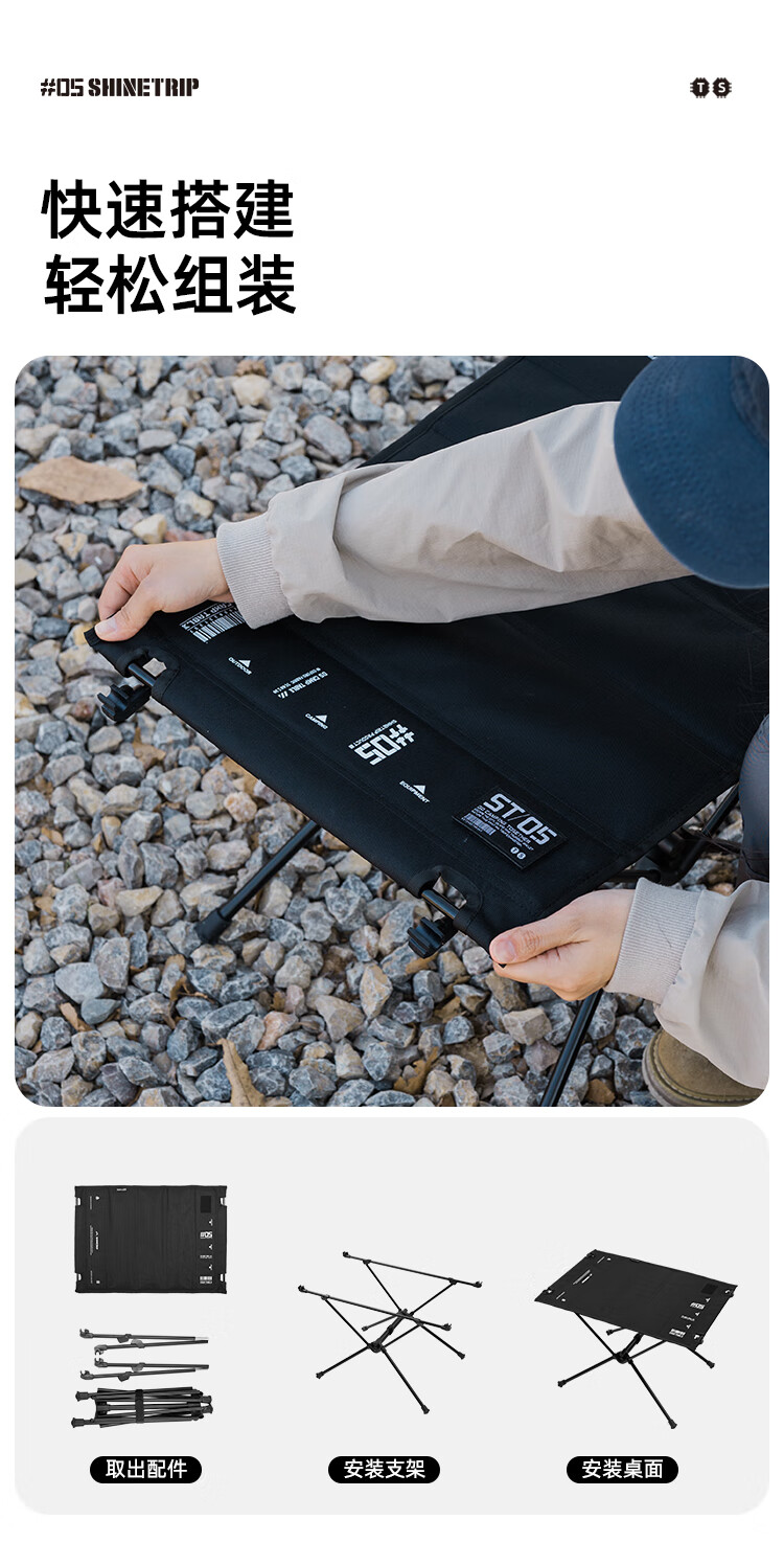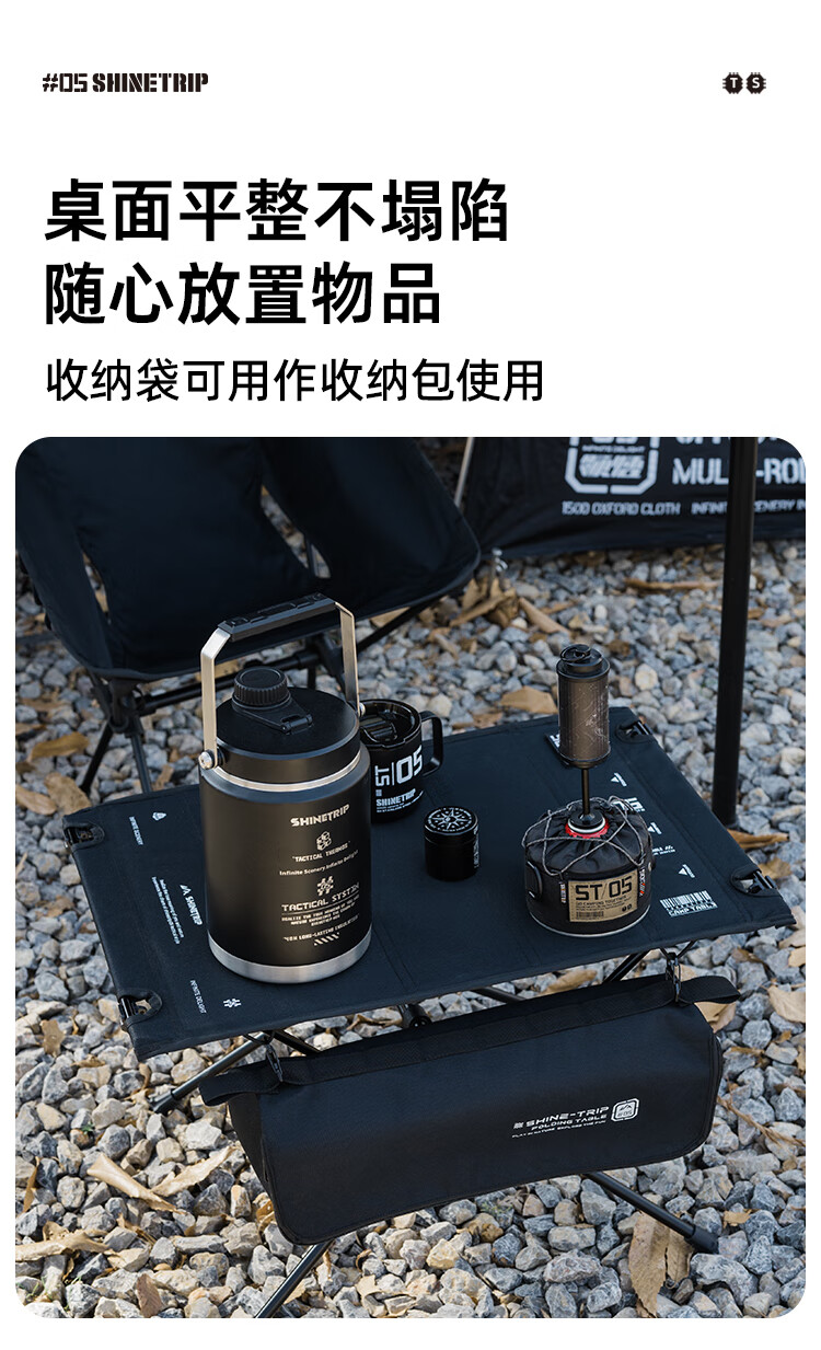 山趣(ShineTrip)户外05系列暗翼IGT战术折叠桌露营桌便携多功能铝合金多用途桌 折叠桌+茶盘+洞洞板*2+层板(不含工具炉具杯具灯)