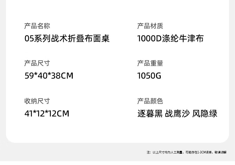 山趣(ShineTrip)05系便携式露营布面折叠桌多功能户外铝合金野餐战术桌轻量化桌子 风隐绿-含收纳袋(不含魔术贴)