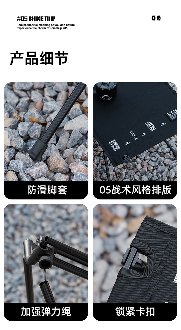 山趣(ShineTrip)户外铝合金克米特椅可拆卸折叠露营椅便携式05系列战术风椅子 逐暮黑