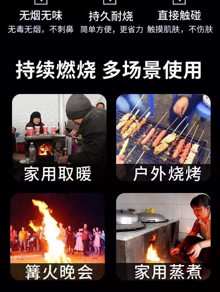 柴火耐烧强力耐烧粉木材取暖煤炭烧火通用耐用木炭速燃家用耐烧粉 800g1袋装【耐烧一整天】