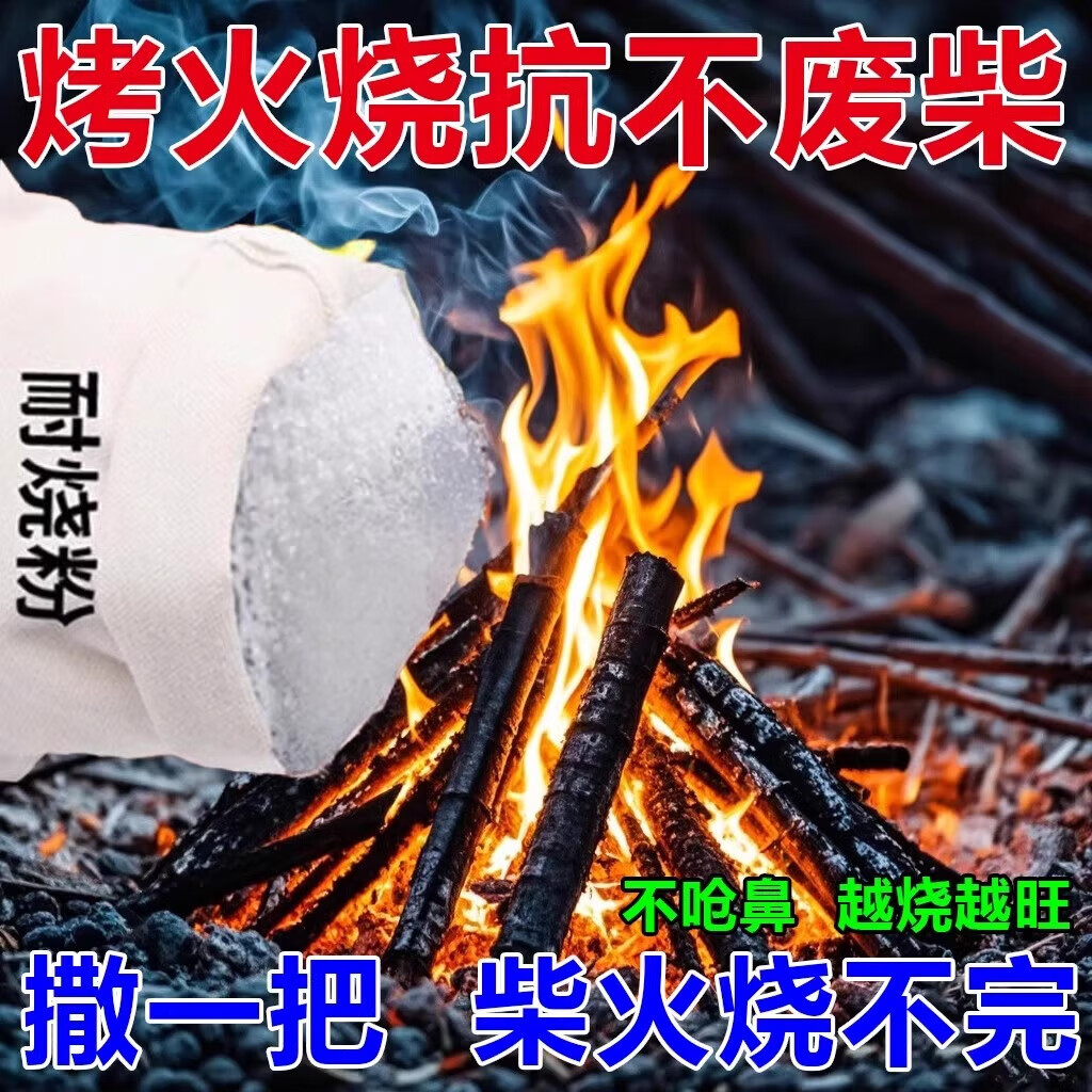 柴火耐烧粉冬天烤火助燃剂农村室内外木头火炉加热取暖耐烧剂 3袋装耐烧粉充分燃烧