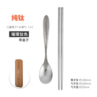 钛途(TITO TITANIUM)纯钛儿童筷子99.5%钛合金空心筷子户外餐具露营便携 冰花结晶+勺套装-璀璨钛色