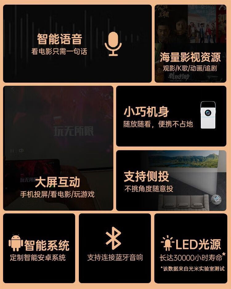 机适用投影仪小型高清家用手机投影一体机投墙上迷你便携式 初级版[在线视频+插U盘]