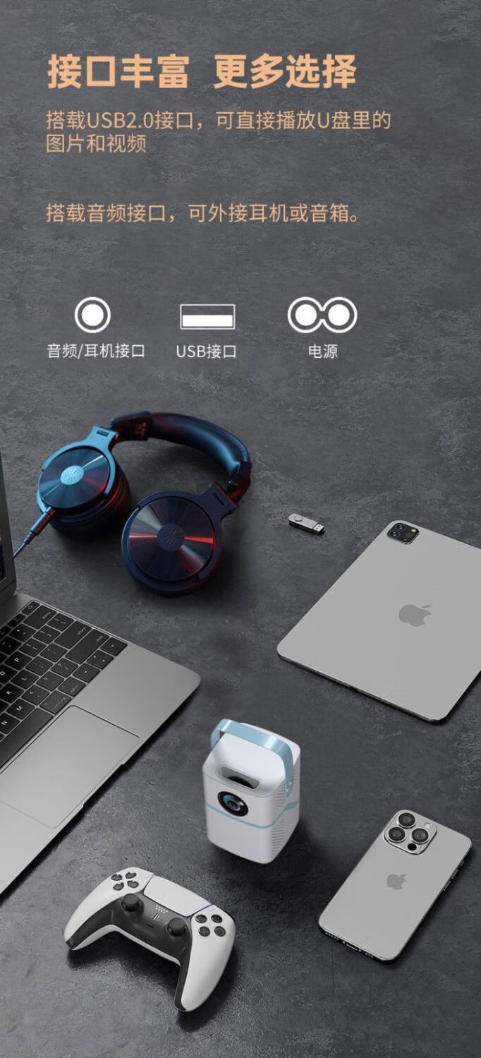 微型投影仪移动便携迷你 2023新款投影仪家用智能户外超高清迷你 基础版-只能接手机
