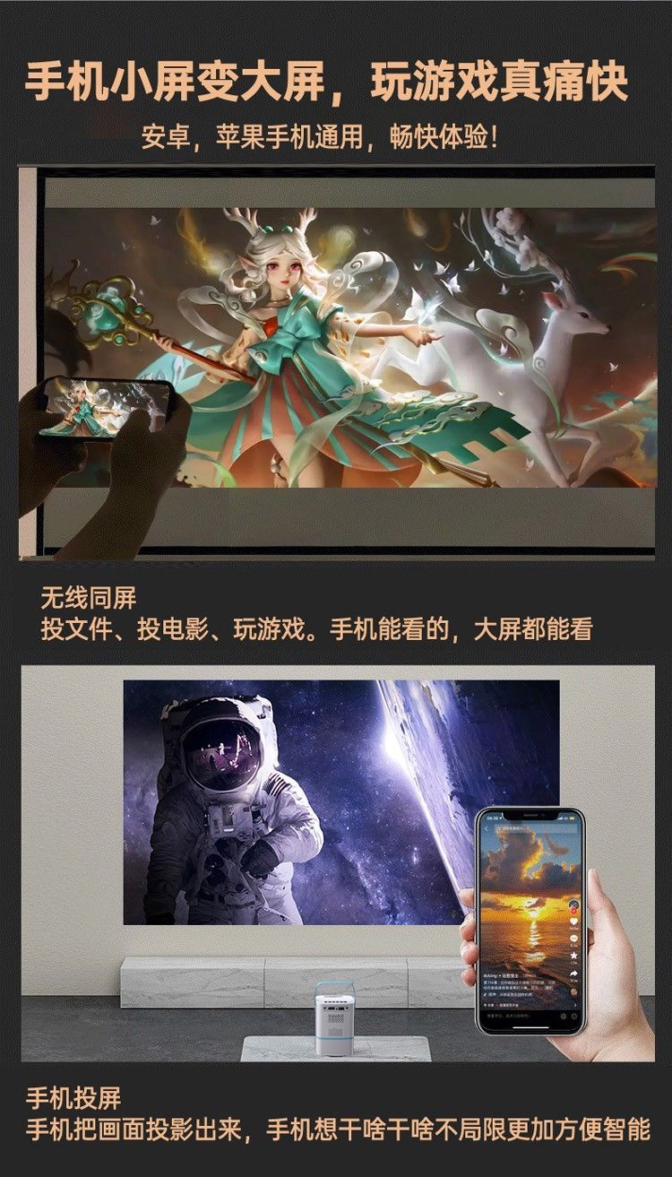 HKMW索尼机(SOYN)适用投影仪家用超高清新款迷你娱乐投墙手机宿舍投影机电影放映家庭影 顶配高清无线同屏(带HDMI接口)
