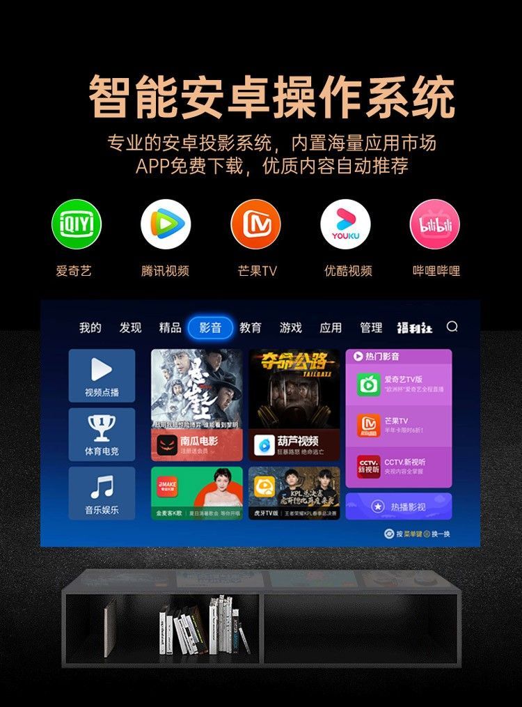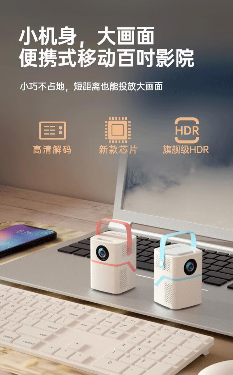 HKMW华为机HUAWEl适用投影仪家用高清可连手机投墙户外露营不插电小型宿舍学生放映机插电充电宝两用携 国内版