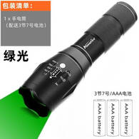 ALONEFIRE强光LED绿光变焦手电筒铝合金远射便携超亮户外 E17绿光手电筒(配3节7号电池)_绿光一档位