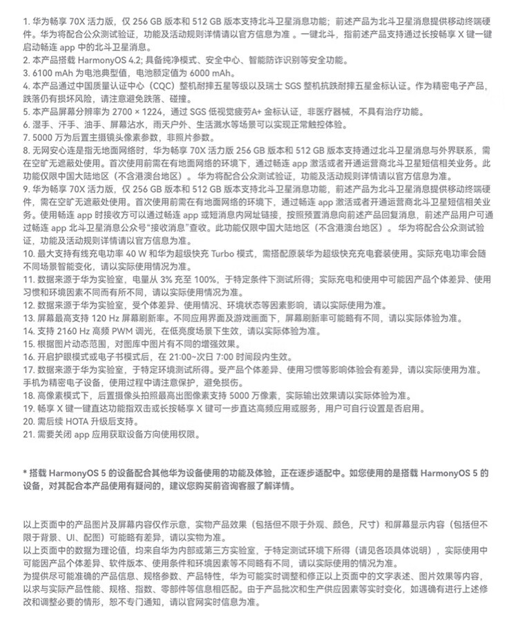 彩盒内标配: 1、手机(内置电池) × 1; 2、华为SuperCharge充电器(Max 40W) × 1; 3、USB Type-C 数据线 × 1; 4、保护膜(出厂已贴在手机上) × 1; 5、快速指南 × 1; 6、取卡针 × 1; 7、TPU保护壳 × 1; 8、云业务权益卡片 × 1; 最终以实物为准。