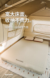 Naturehike挪客羽骨C12自动充气床垫 午休睡垫地垫户外露营家用便携加厚双人 黎草色/双人内置泵/132*200*12cm