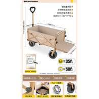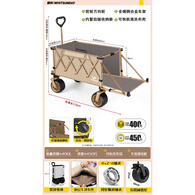 原始人露营车推车户外营地拖车大折叠手推野餐野营手拉车遛娃小拉车 160L 卡其色重载聚拢款+桌板