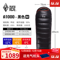 黑冰(BLACKICE) BLACKICE黑冰睡袋A700拒水 鸭绒睡袋充绒A系列户外成人羽绒睡袋 黑色 A-1000 M号【新标准】