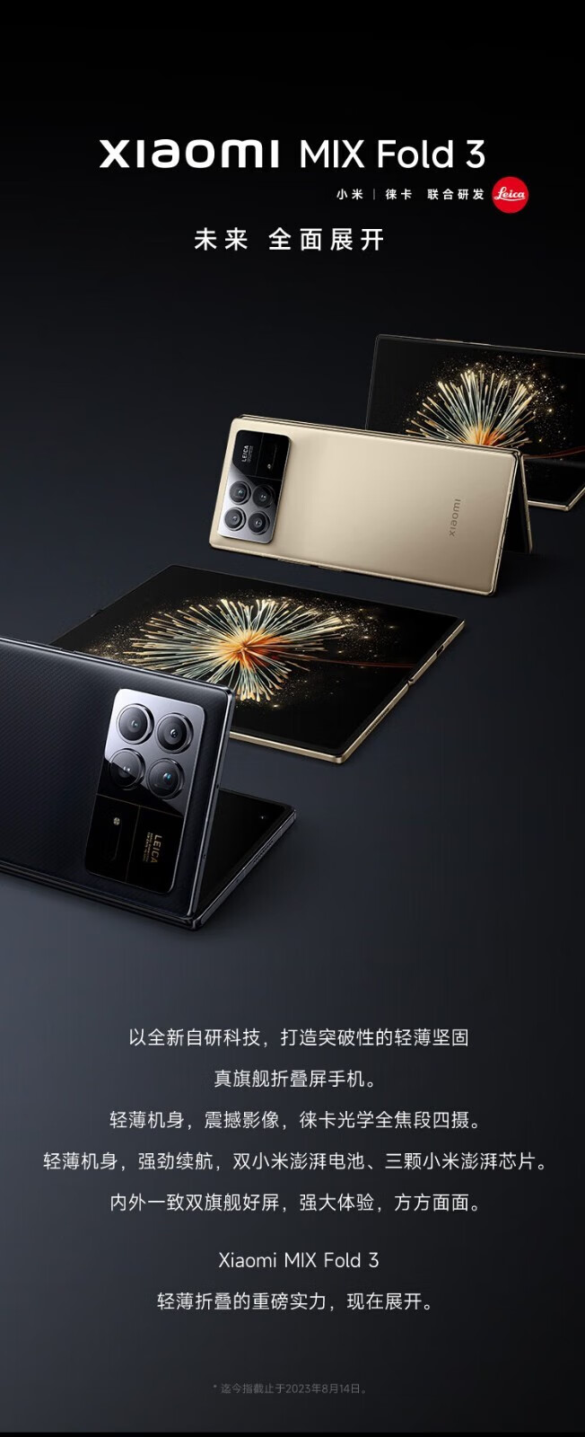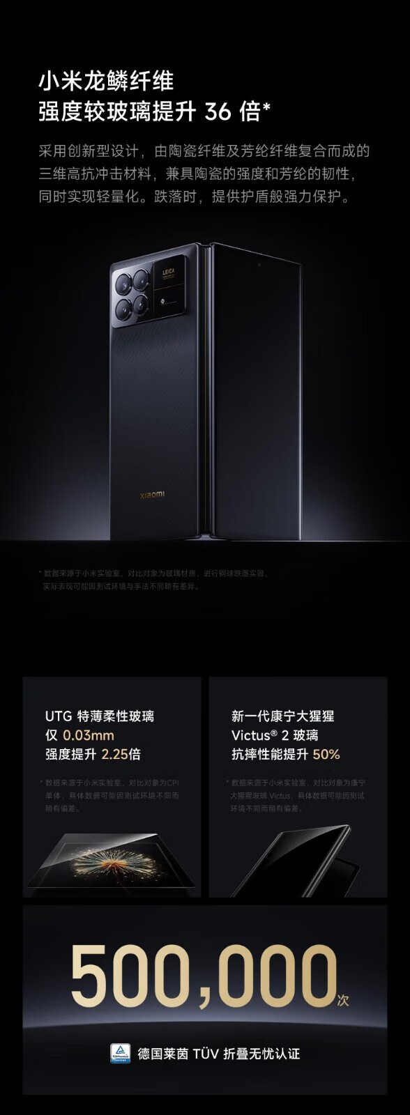 小米 MIX Fold 3 龙骨转轴 徕卡光学全焦段四摄 双E6旗舰屏幕小米折叠屏3 龙鳞纤维版 16GB+512GB