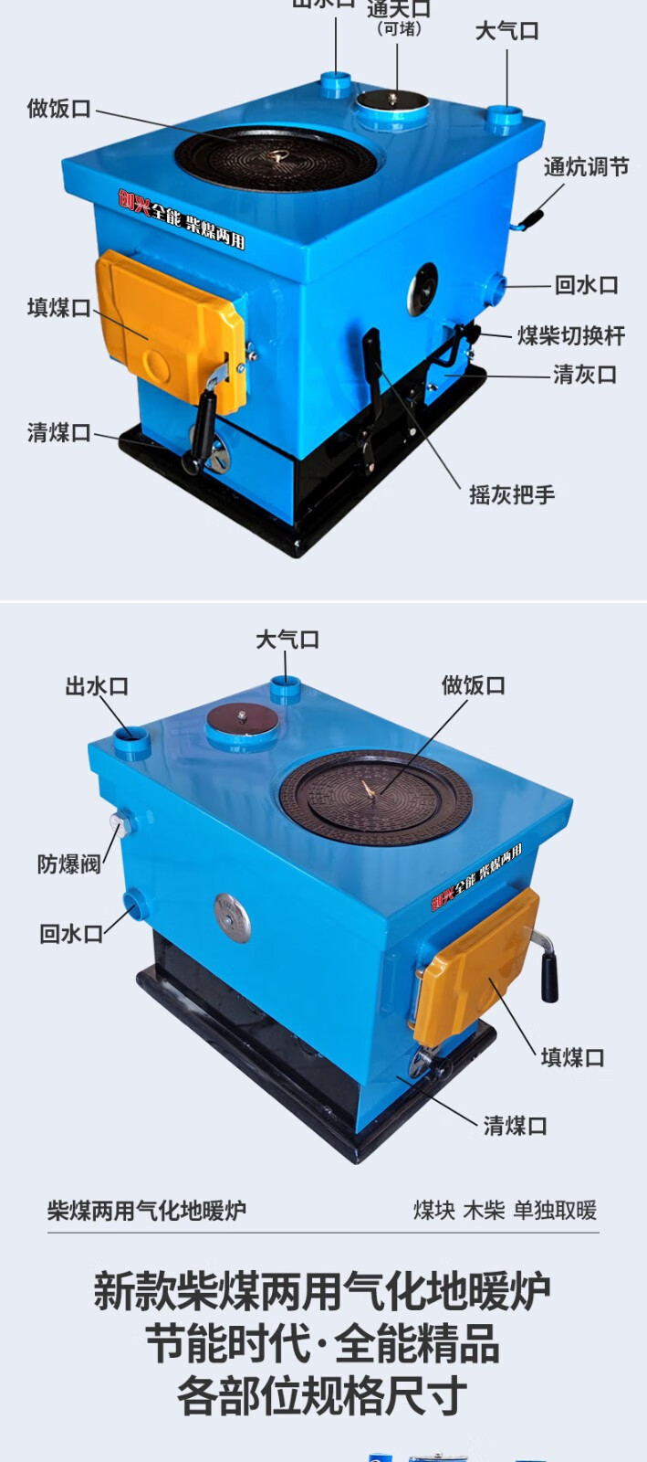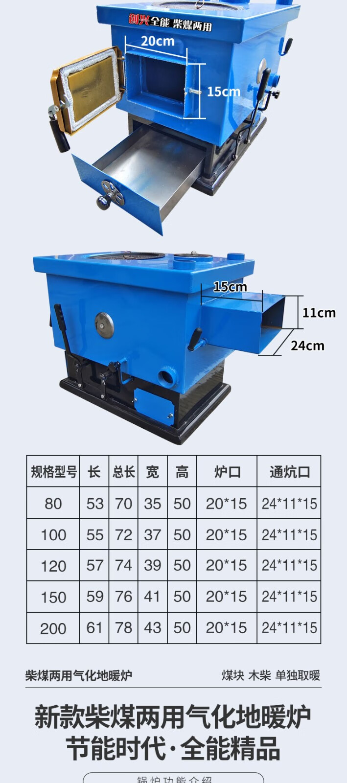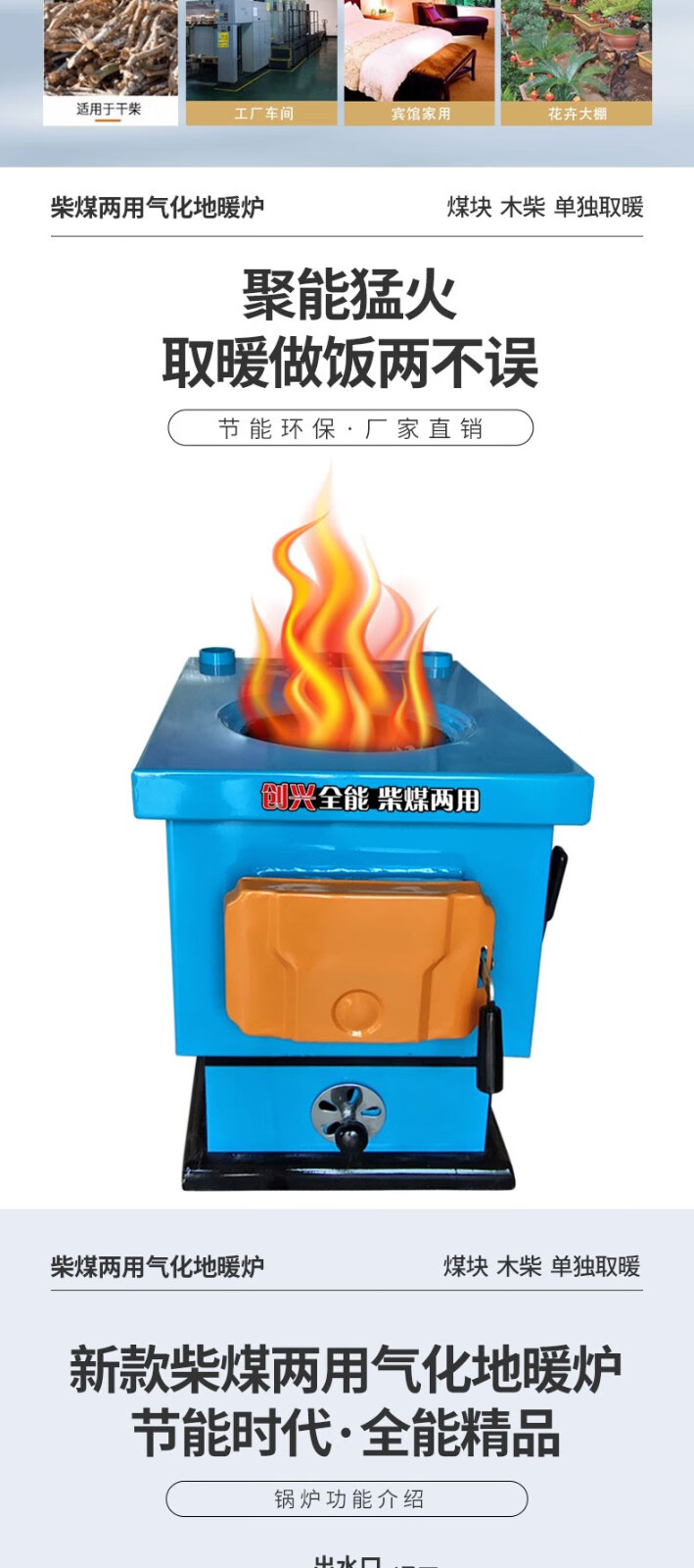 家用采暖炉农村新型水循环取暖炉柴煤两用地暖锅炉烧煤燃煤暖气炉 通天通炕80#方口