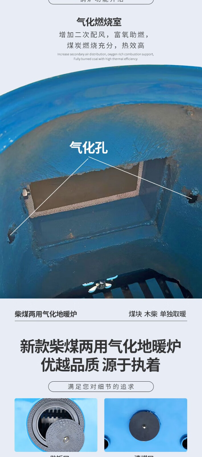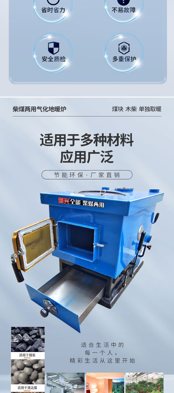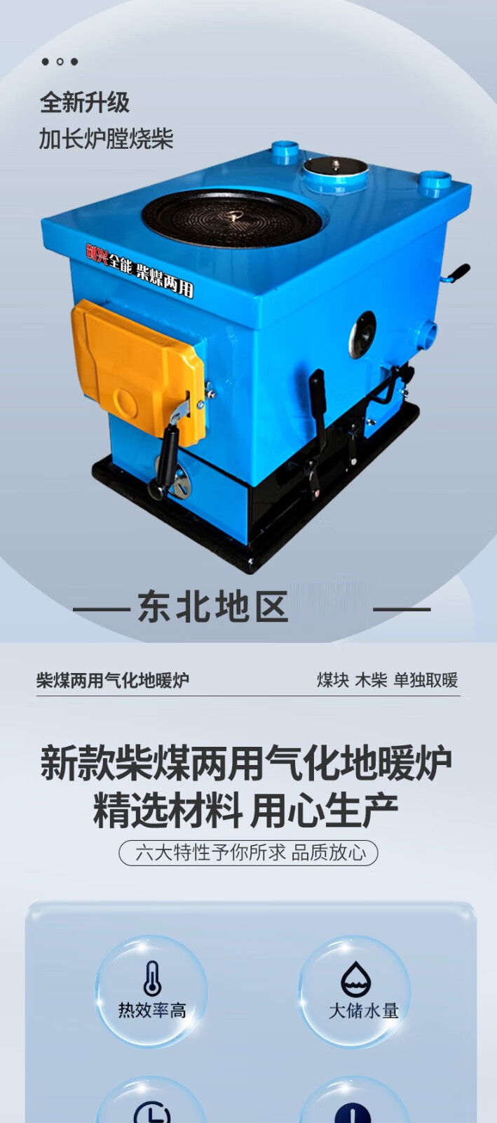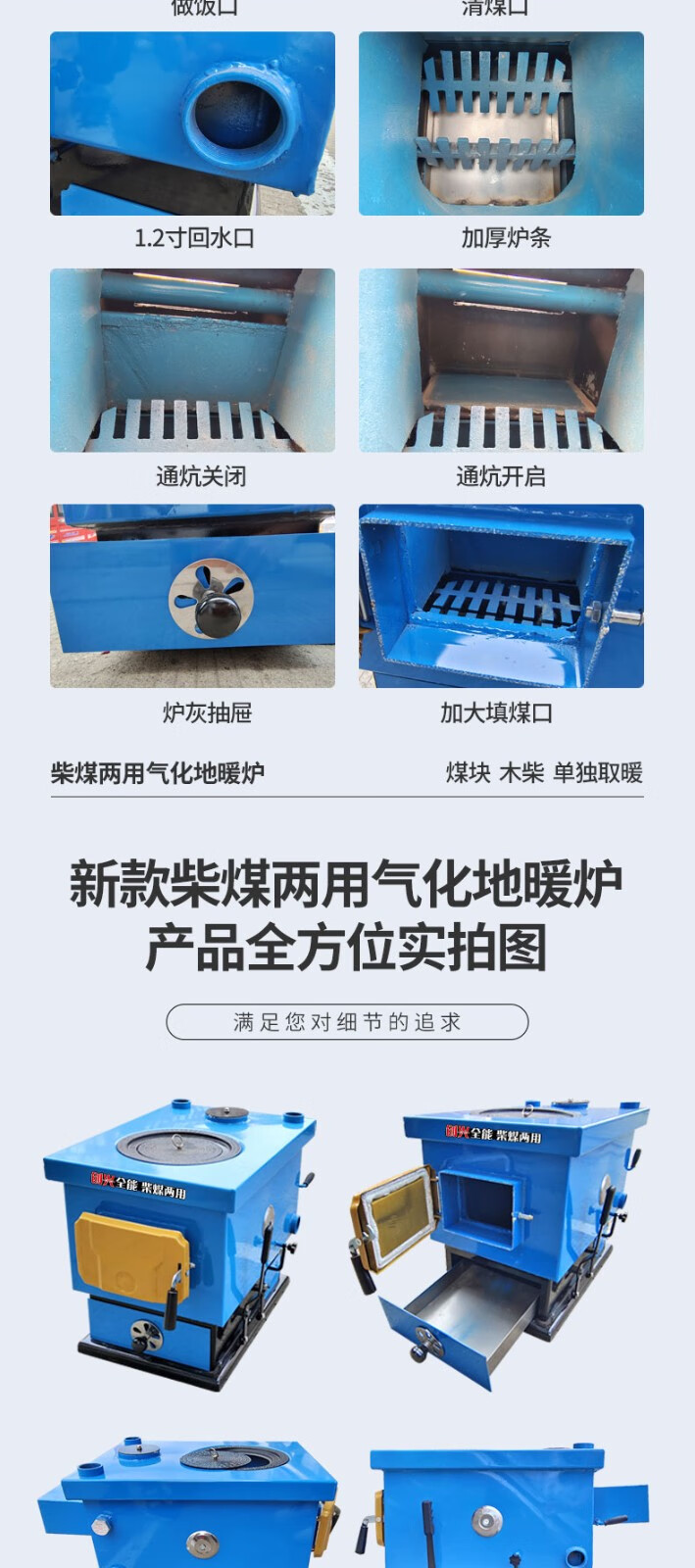 家用采暖炉农村新型水循环取暖炉柴煤两用地暖锅炉烧煤燃煤暖气炉 通天通炕80#方口