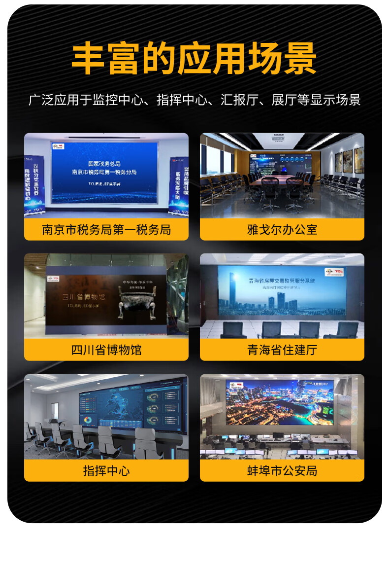 无缝拼接视觉效果绝了,178° 广视角无死角,开会、展示都清晰。运行稳定无噪音,操作简单易上手,TCL 品质靠谱,用着放心,不愧是口碑之选!。