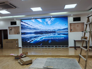 大会议室用大显示屏,非常适配,坐在后排也可以看的很清楚,坐在前排也不会刺眼,整体效果很好!