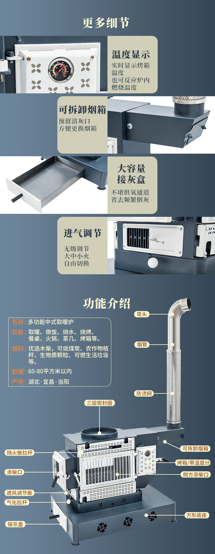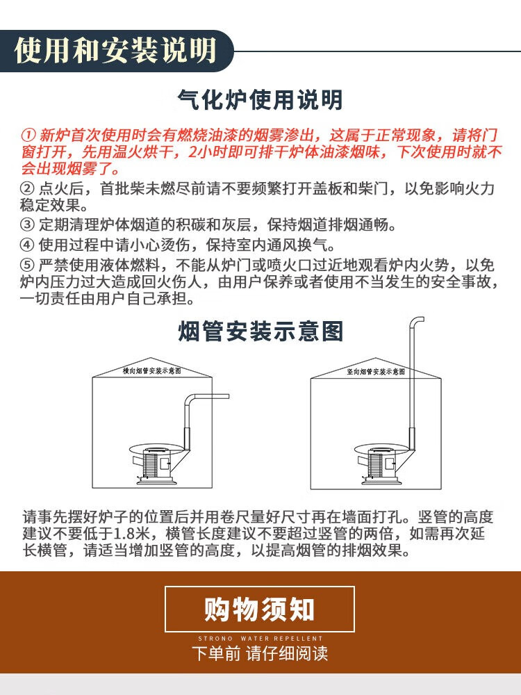 炬宏【包送到家】气化炉家用室内烤火炉柴煤两用无烟柴火取暖炉灶农村 单炉体(无烟管配件无桌面)(柴煤两用)