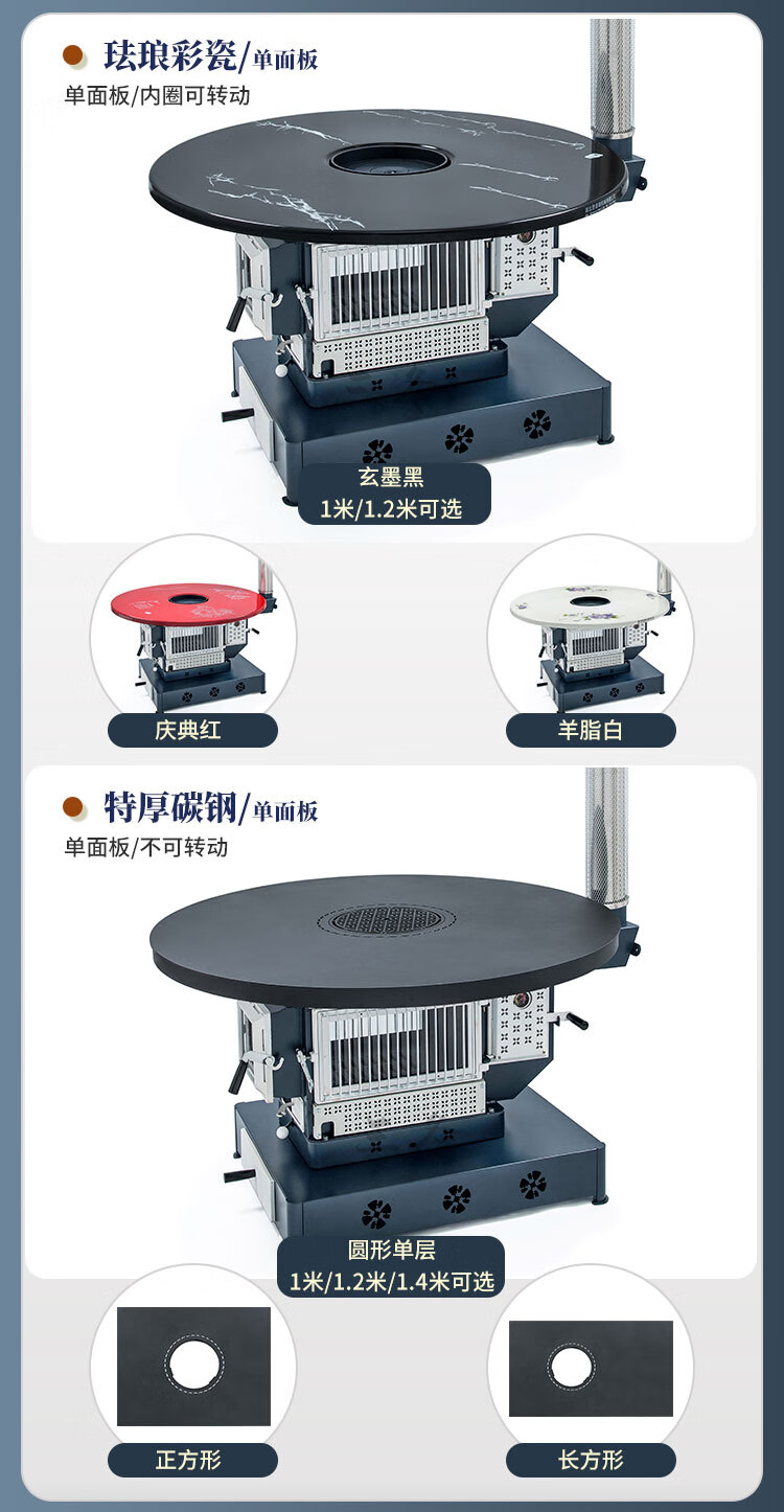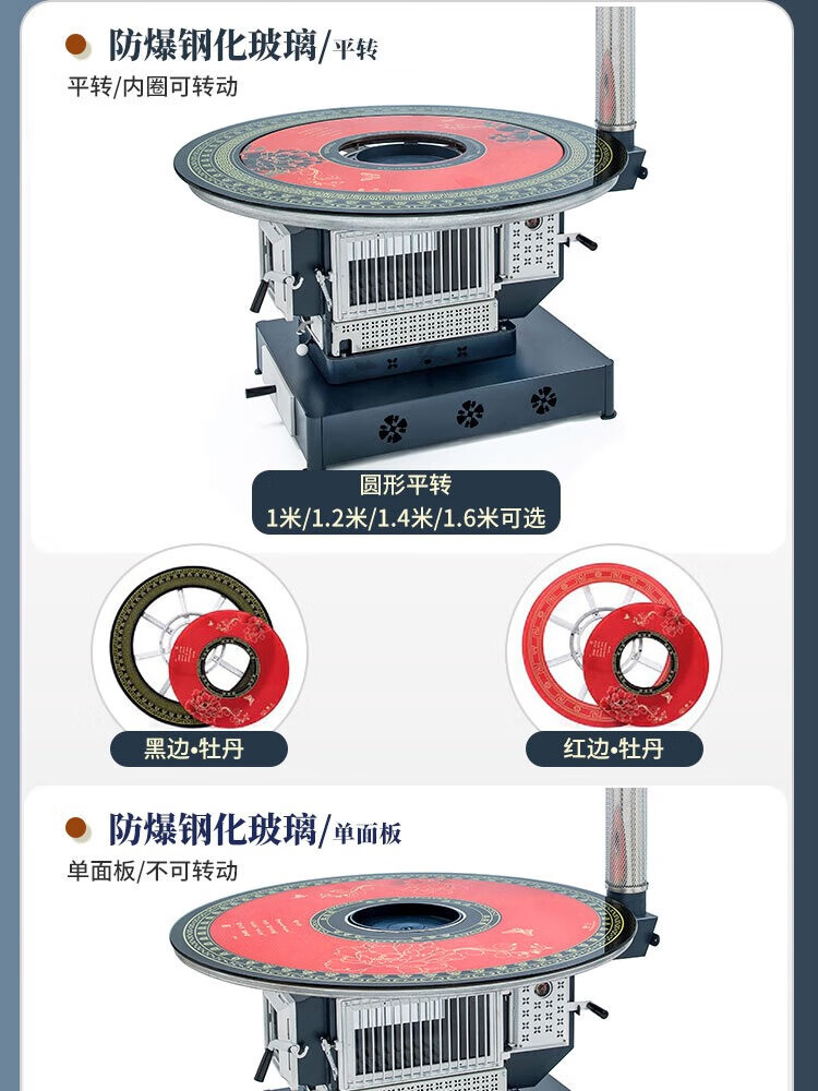 璞灶旺回风炉农村家用取暖柴火炉煤火炉柴煤两用炉多功能烤火桌节能取暖 0.8米钢化玻璃桌面 柴煤两用炉