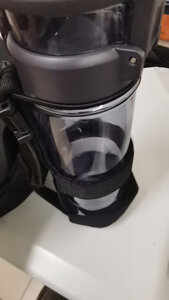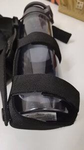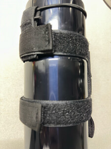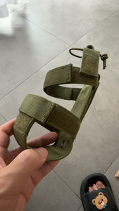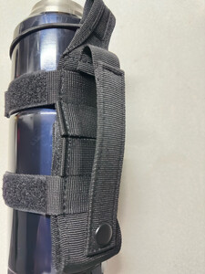 材料非常结实,而且用万能贴,可以调整尺寸来适应不同尺寸的水壶。不用的时候也直接收纳起来,不会妨碍其它使用。上面有一个贴扣可以防止水壶掉落。