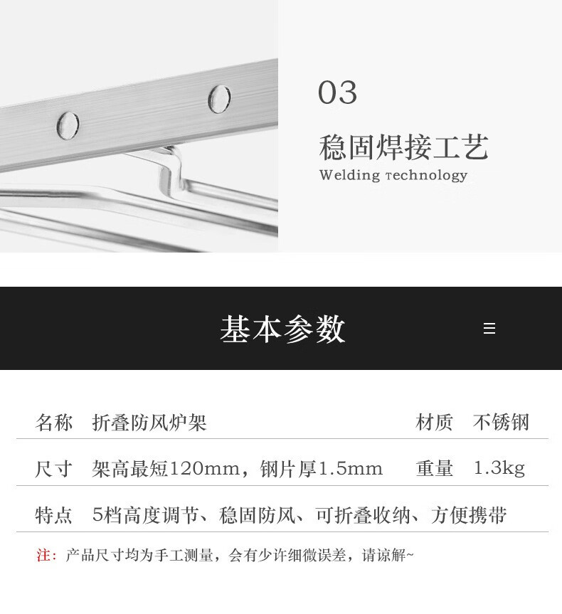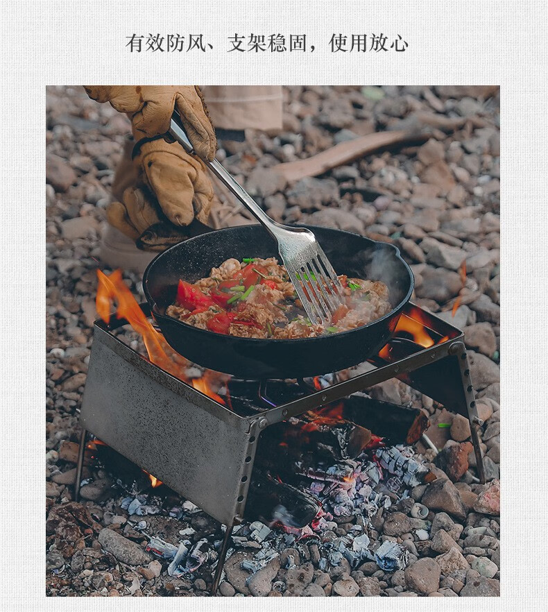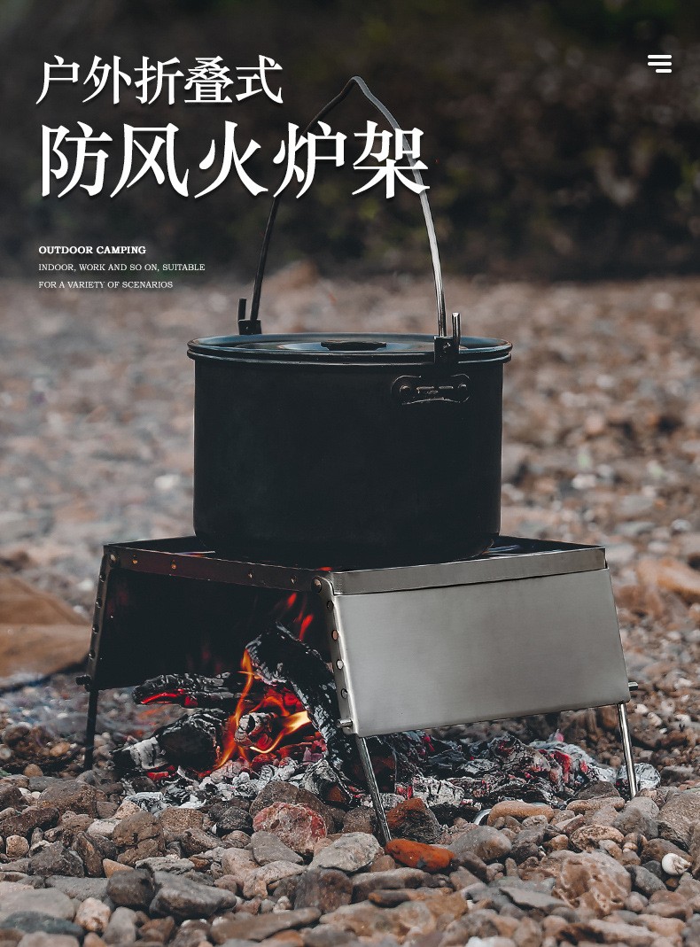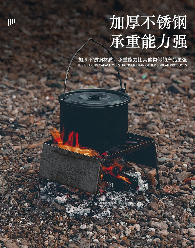FLYVII 户外不锈钢防火锅架便携折叠烧烤架五档高度可调节架防风炉架 炉架
