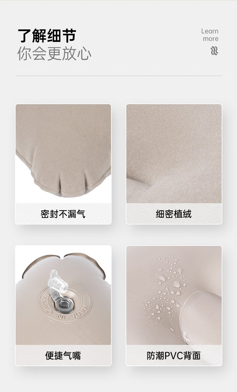 清系充气枕头 旅行枕 便携舒适午睡 露营睡枕 充气枕