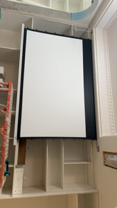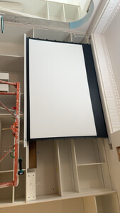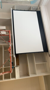 师傅上门安装,考虑周到,安装完美!幕布质量很好,用料扎实。安装后效果也很完美,收上去后贴合预留的开槽位置,隐藏的很棒!这是白天的效果已经很好了,晚上会更出彩!很好的购物体验,点赞!
